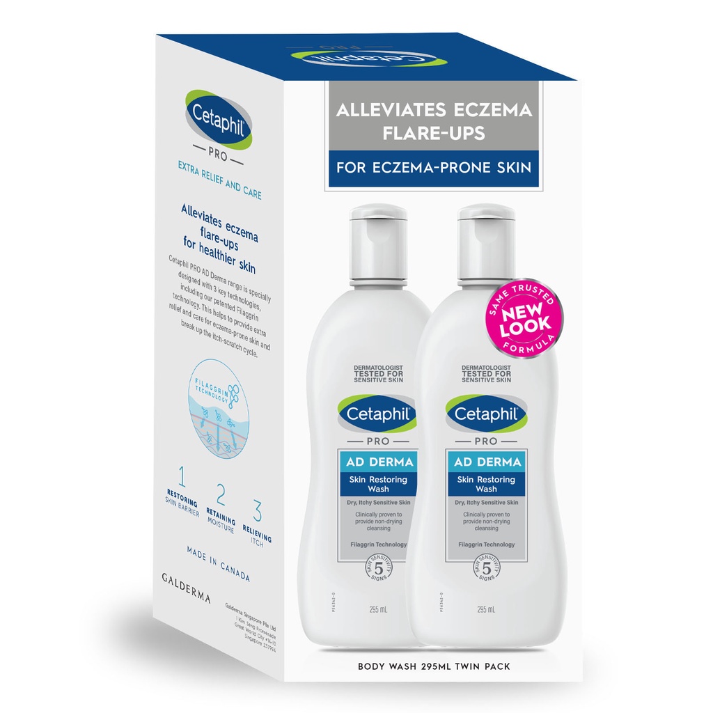 CETAPHIL PRO AD Derma Skin Restoring Wash 295ml Twin Pack, For Eczema Prone Skin [Soothes Dry, Itchy, Irritated Skin]