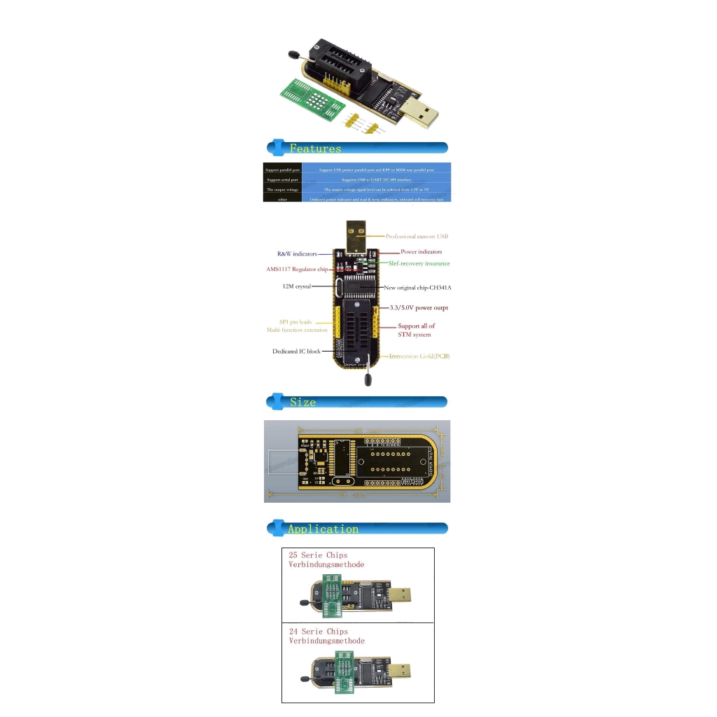 CH341A 24 25 Series EEPROM Flash BIOS USB Programmer Module + SOIC8 SOP8 Test Clip For EEPROM 93CXX / 25CXX / 24CXX