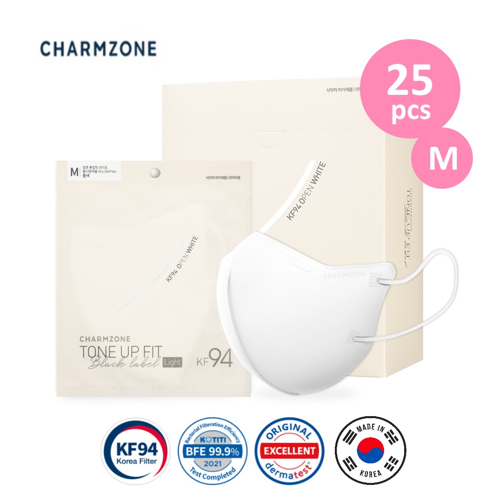 CHARMZONE 2D Tone Up Fit Black Label Light KF94 masks 25 pcs individual packs per box Open White M size [Local Stock]