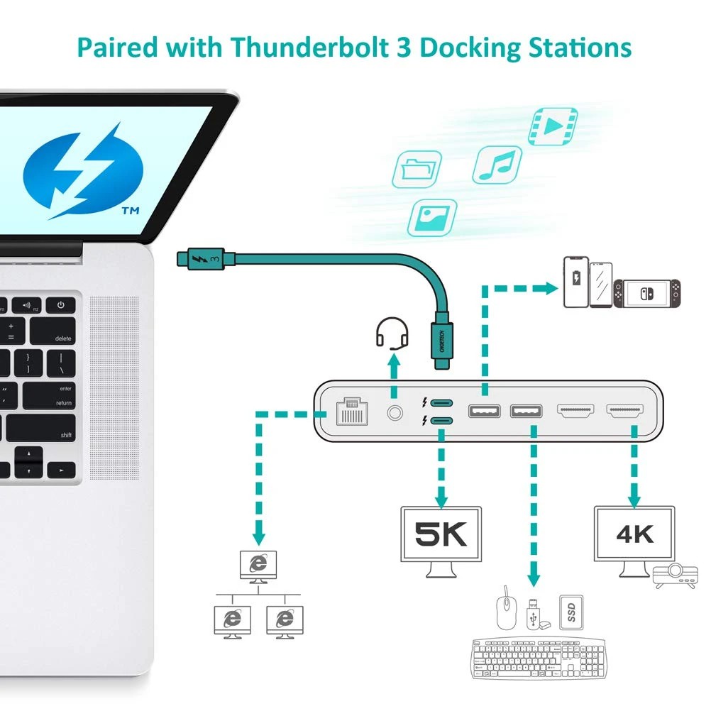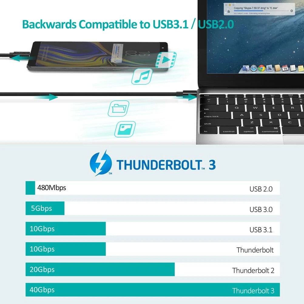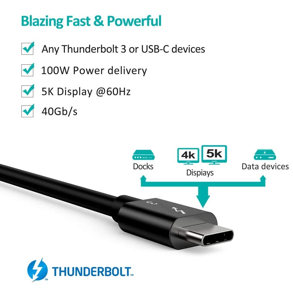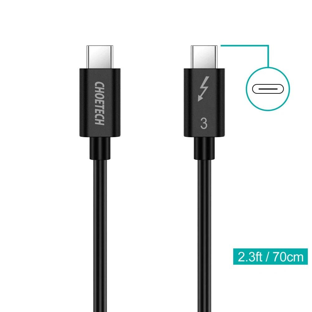 CHOETECH (2.3ft/70cm) USB Type C Thunderbolt 3 Cable with 40Gbps/100W Charging ( 2.3ft / 0.7M)