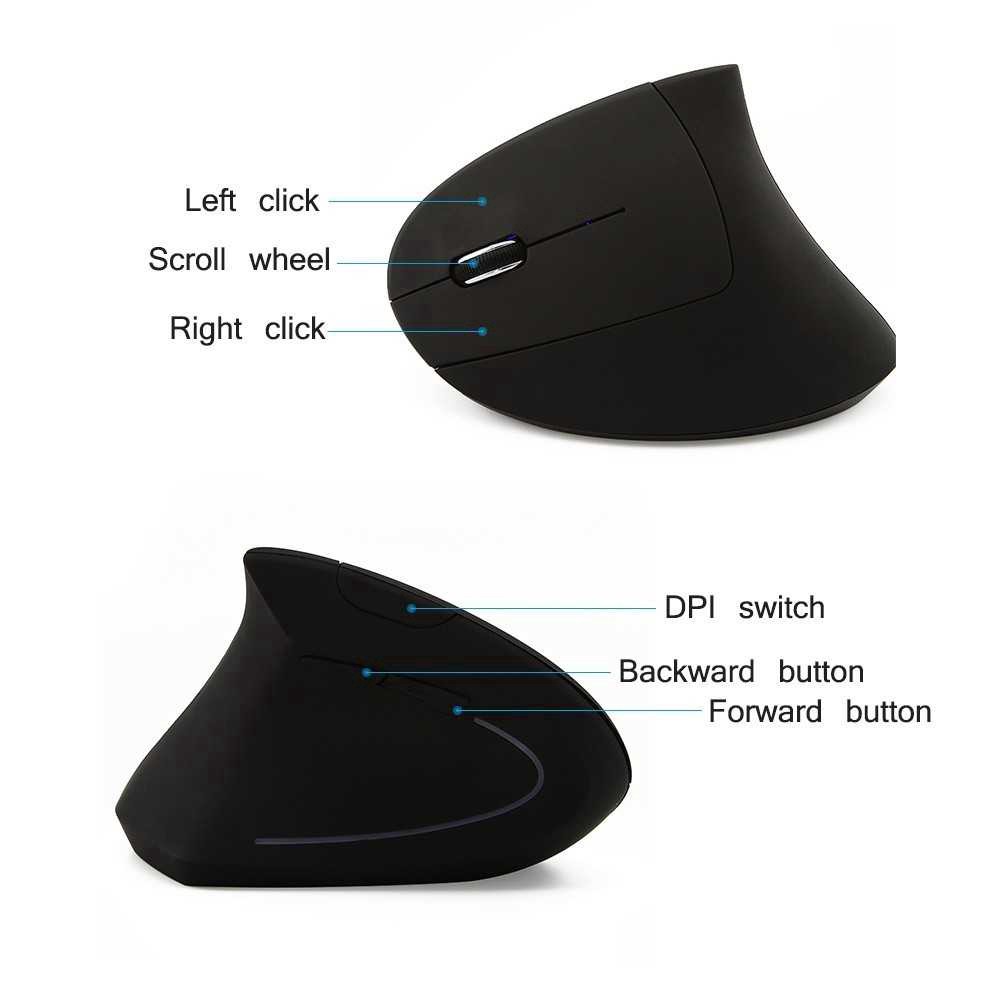 CHYI Left Handed Vertical Wireless Ergonomic Mouse 2.4Ghz Optical USB Computer Mouse Left Hand 6 Button PC LED Mice For