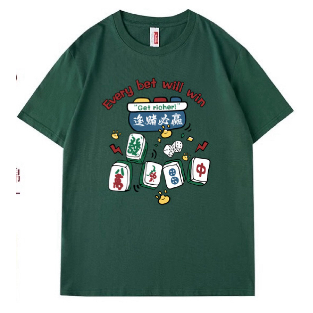 CNY 2026 New Year 新年马年 Cute Mahjong 可爱麻将 Organic Cotton Unisex Short Sleeve Tshirt