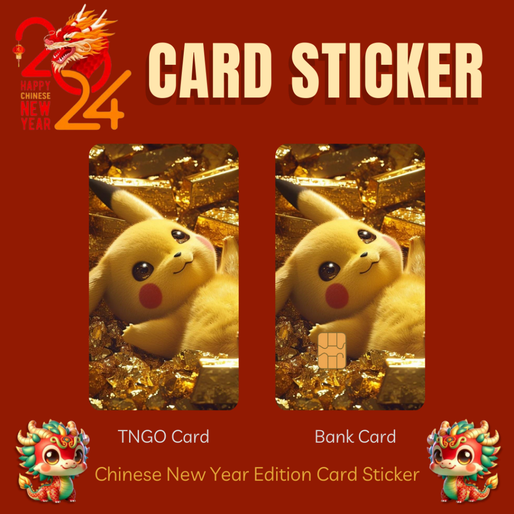 CNY 2024 GOLDEN PIKACHU CARD STICKER - TNG CARD / NFC CARD / ATM CARD / ACCESS CARD / TOUCH N GO CARD / WATSON CARD