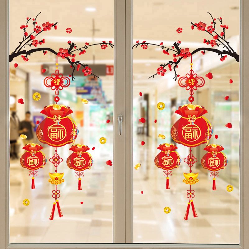 CNY 2025 Snake Year stickers, New Year decorations, glass stickers, lucky words, window decorations, door decorations, Chinese New Year atmosphere,