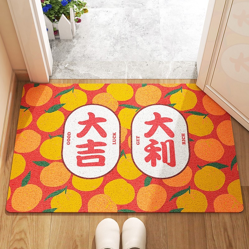 CNY Chinese New Year floor mat,PVC Silk loop Welcome Door Mat, Entrance Carpet, Hallway Anti-Slip Floor Mat Front Door Mat Entrance Dusting Door mat Festive Floor mat