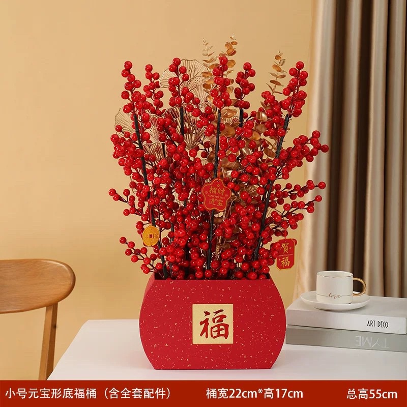 CNY Fortune Fruit Flower Decoration Chinese New Year Fortune Tree Vase Luck Prosperity AngBao