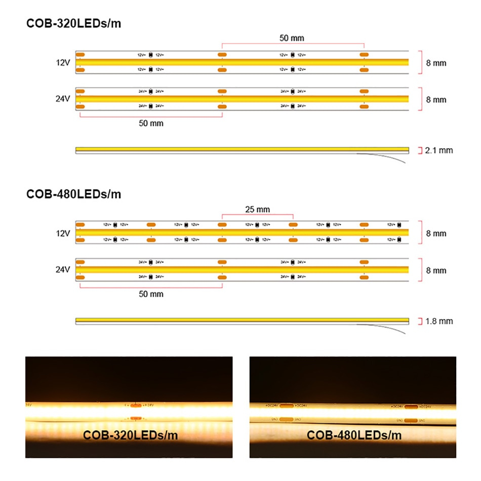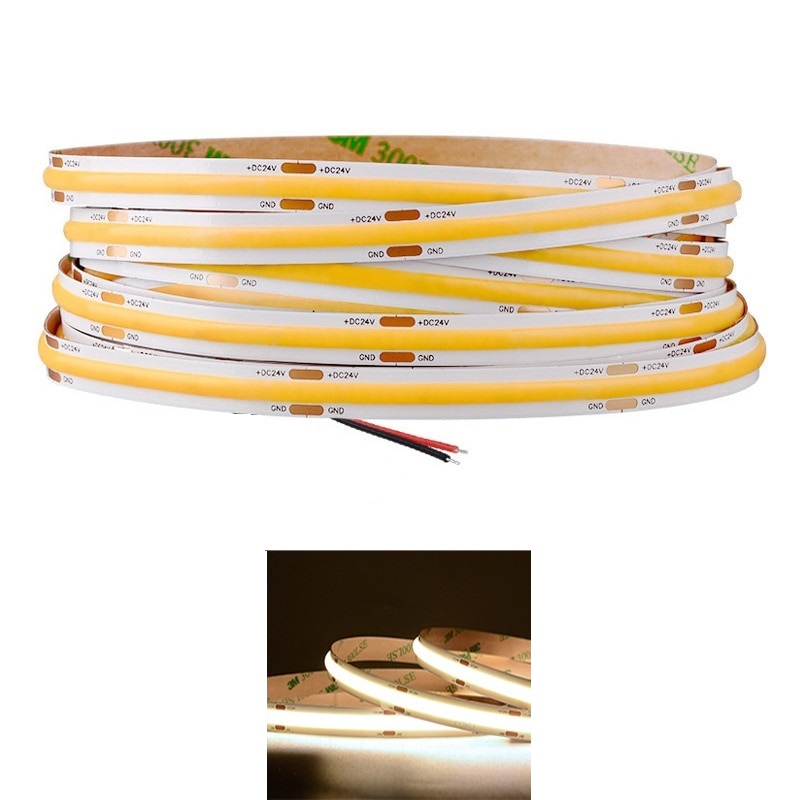 COB LED strip light 2835 5m roll home cove wardrobe light ambient light Flexible DC12V 24V Warm Natural White