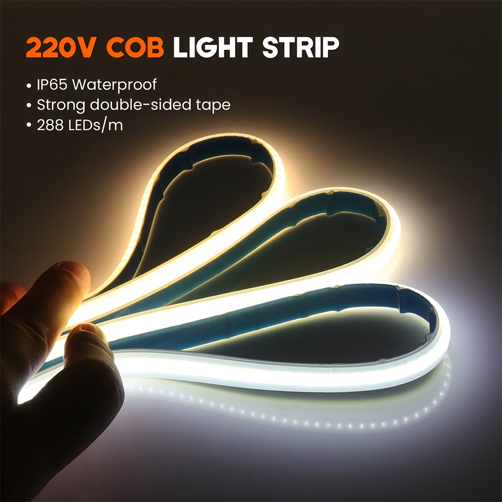 COB Strip LED 220V High Brightness IP65 Waterproof Outdoor LED Strip 220V LED Ribbon Flexible Tape for Home Garden Christmas Party Decor