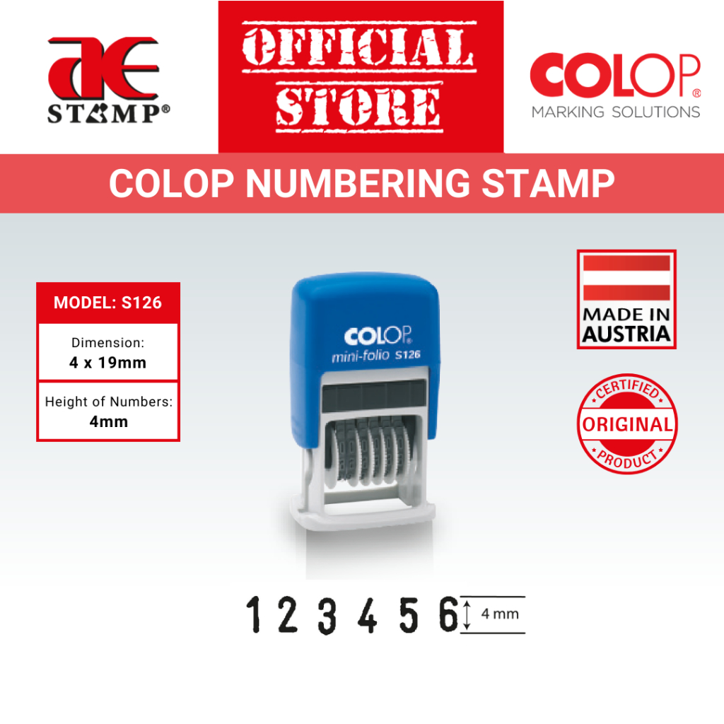 COLOP Numbering Stamp S126 (4x19mm) S120/13 (4x41mm)| 6 digit & 13 digit numbering band 4mm| Rectangle Self Inking Stamp