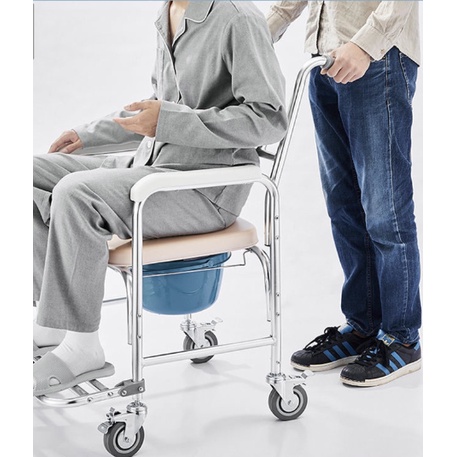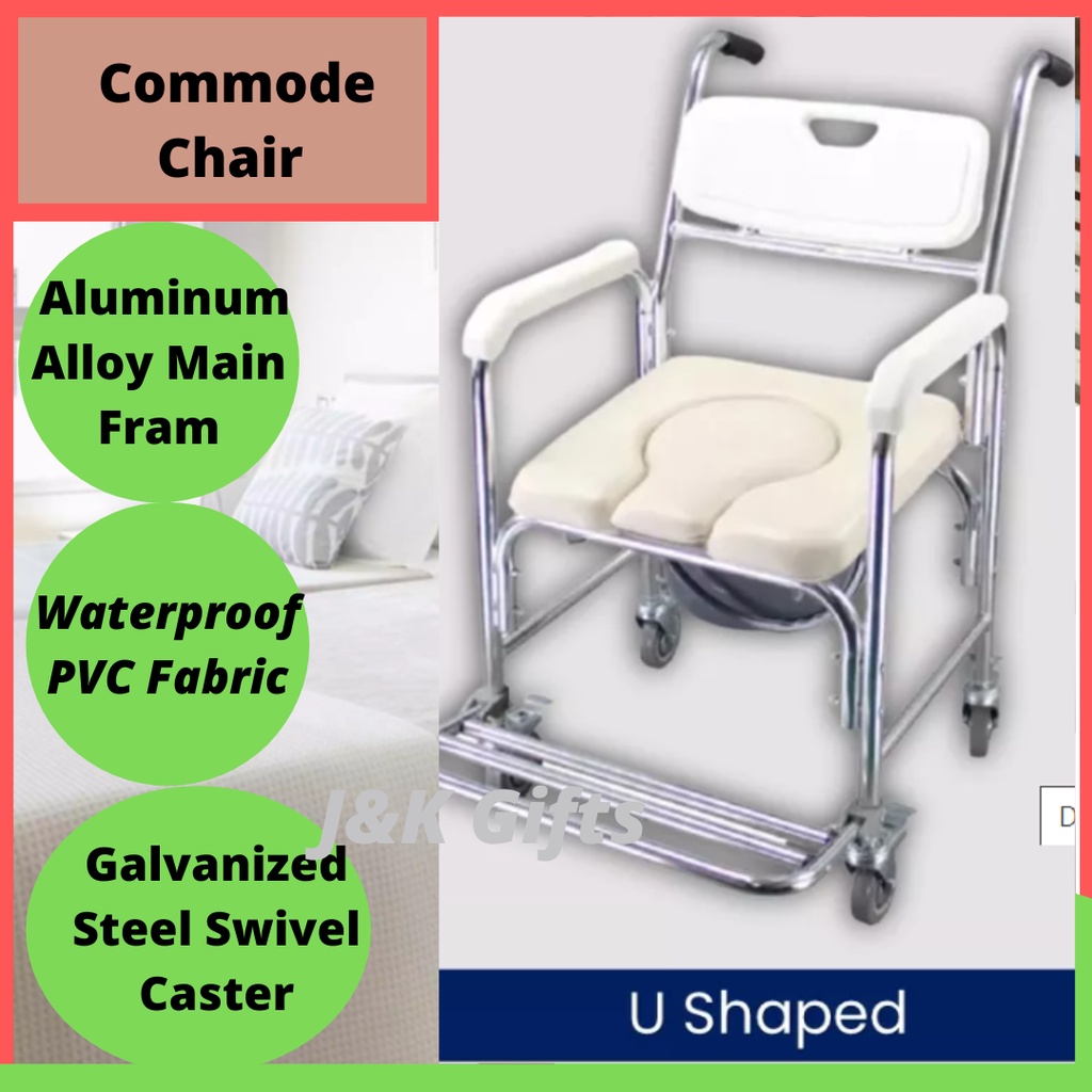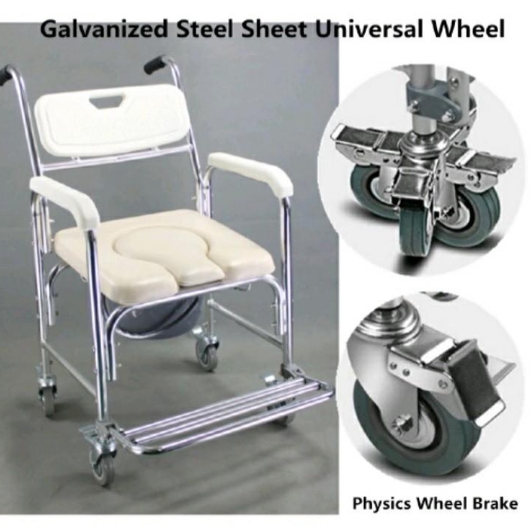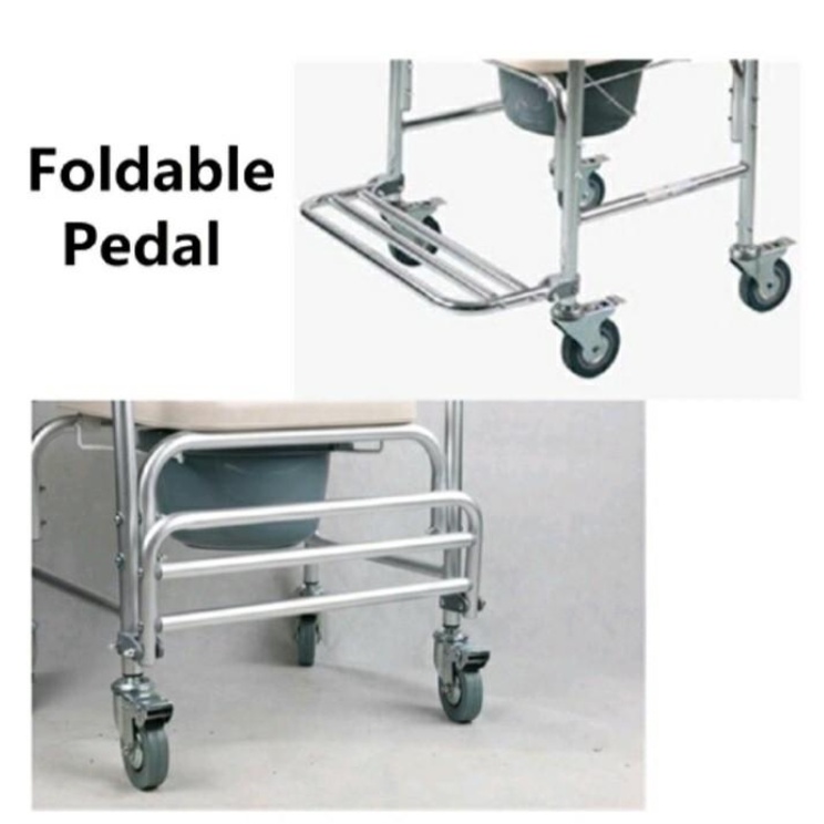 COMMODE Portable Medical Steel Folding Toliet Bedside Shower Waterproof Commode Chair with Wheels And Footrest