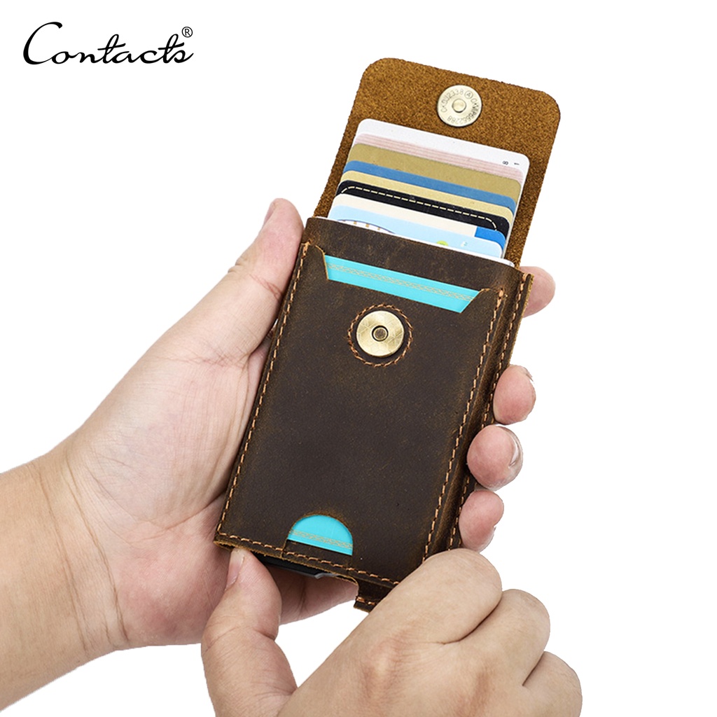 CONTACT'S Men's Credit Card Holder Wallet RFID Genuine Leather Hasp Card Case Man Casual Designer Mini Cards Aluminum Box Purse