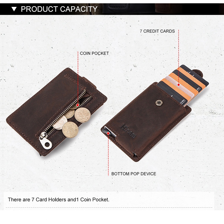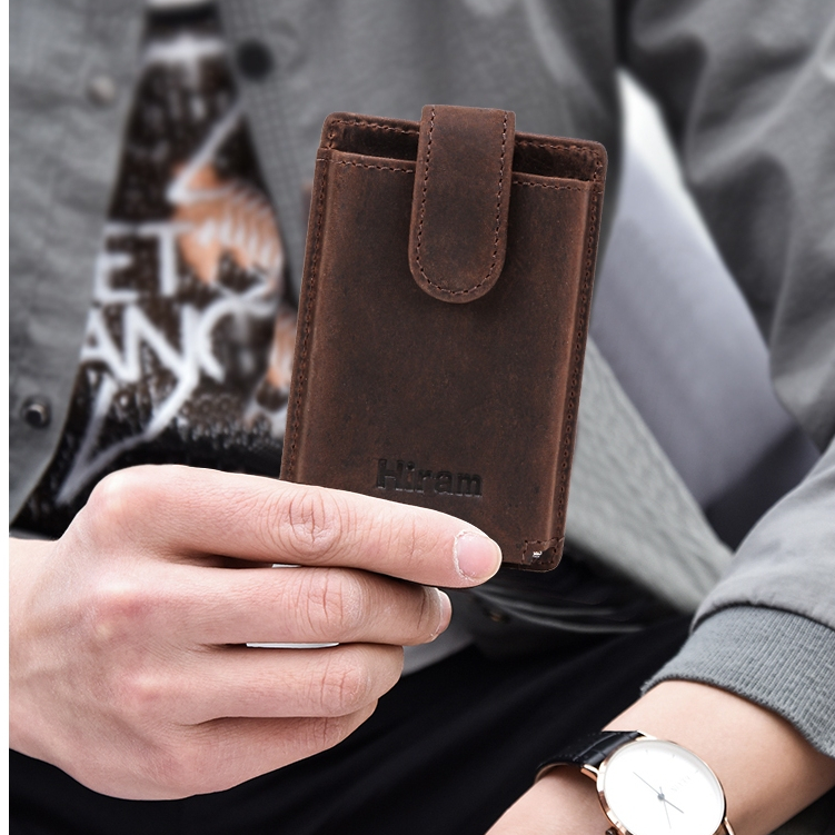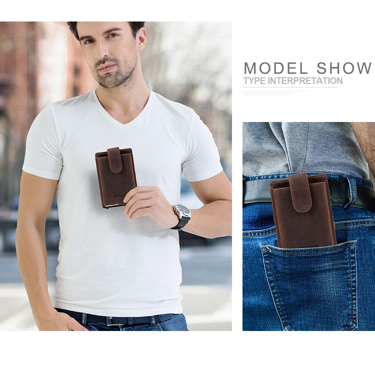 CONTACTS FAMILY Genuine Leather Credit Card Holder Men's Wallet RFID Hasp Card Case Man Casual Mini Cards Aluminum Box Purse