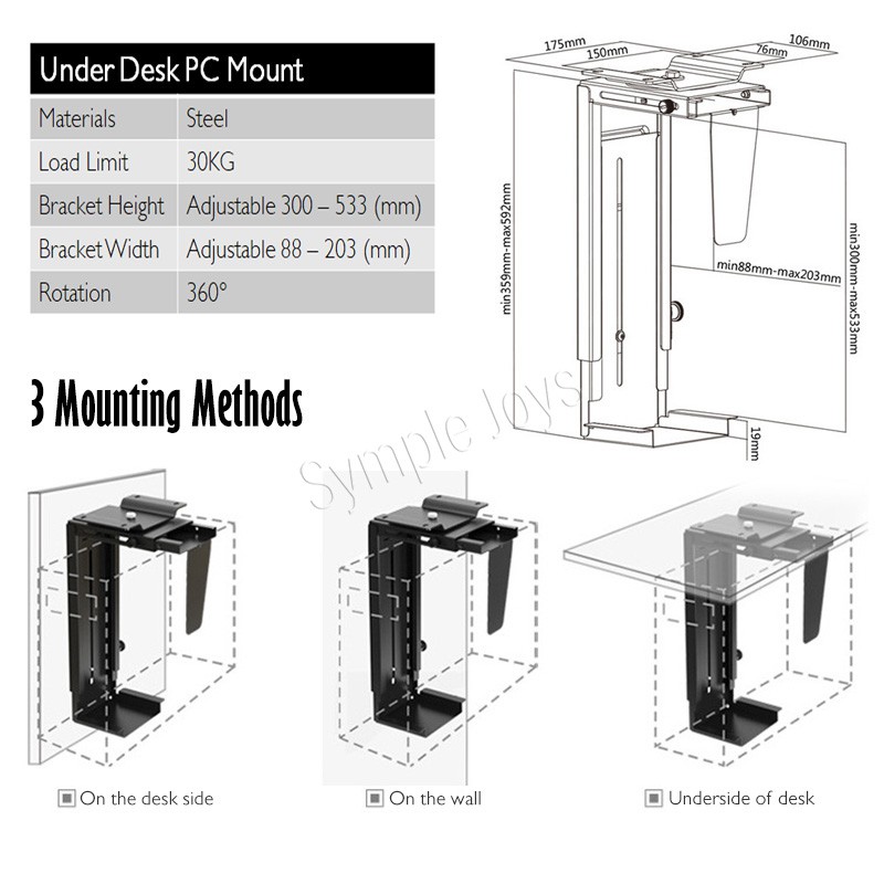 CPU Holder Under Desk Mount Adjustable Wall PC Stand Heavy Duty Computer Tower Casing Holder