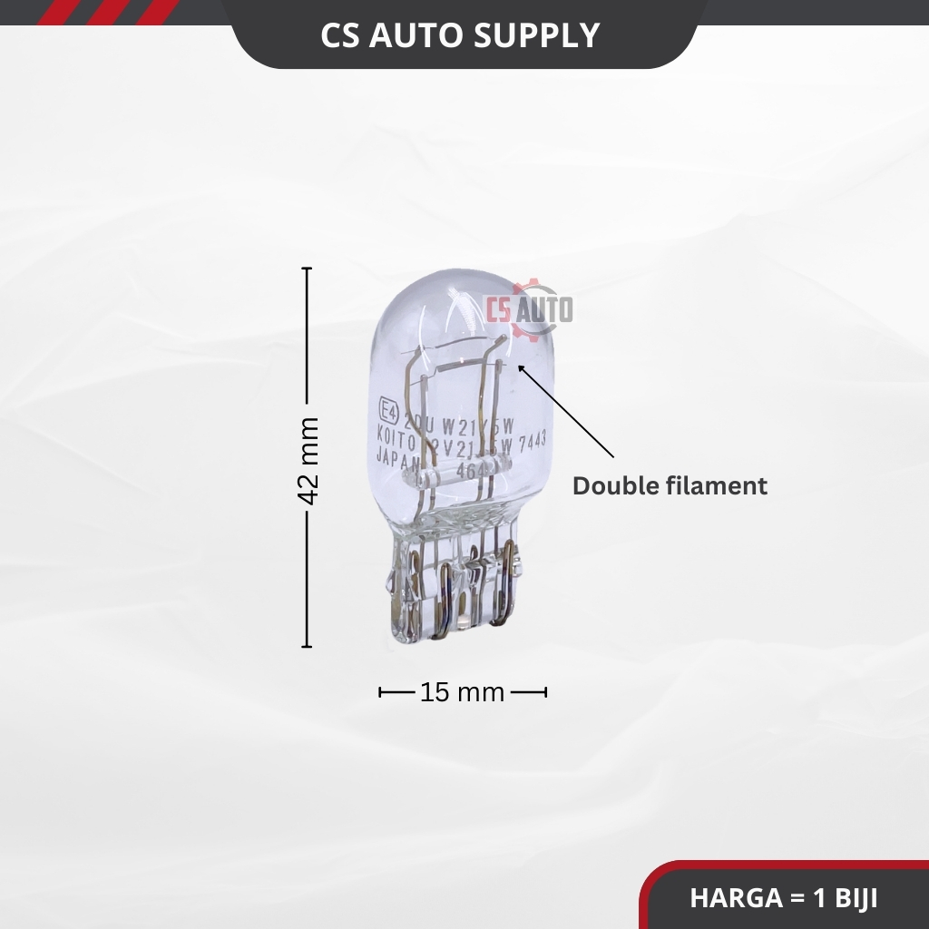 CS 1pc x Koito JAPAN 12V T20 W21/5W 1891 7443 Bulb Double Filament Lampu Mentol Brek Kereta Motor