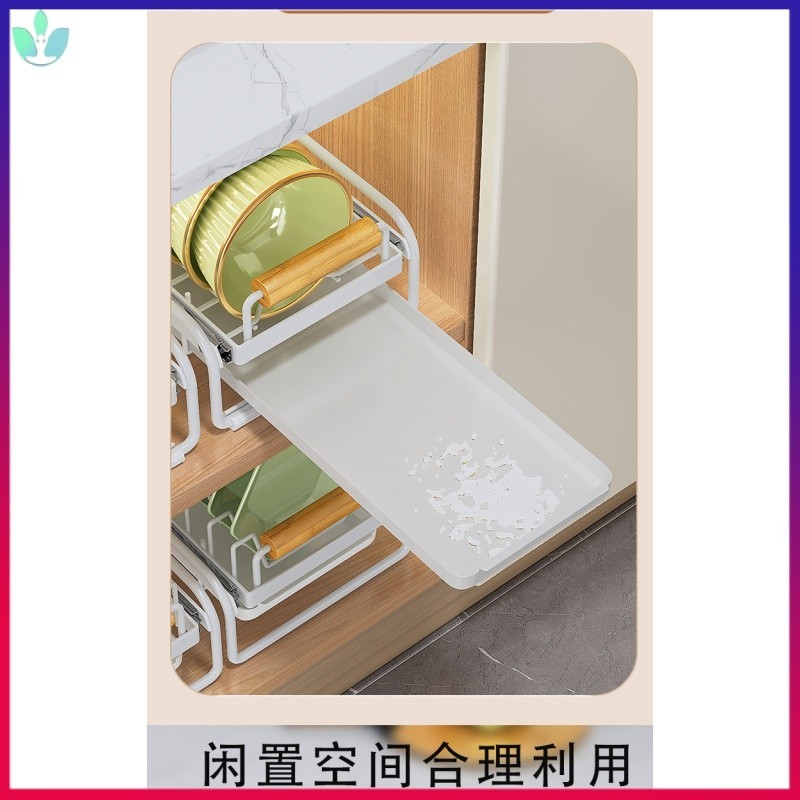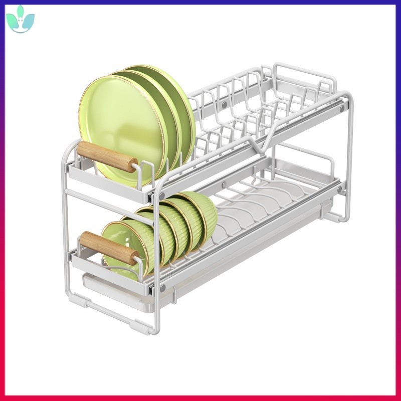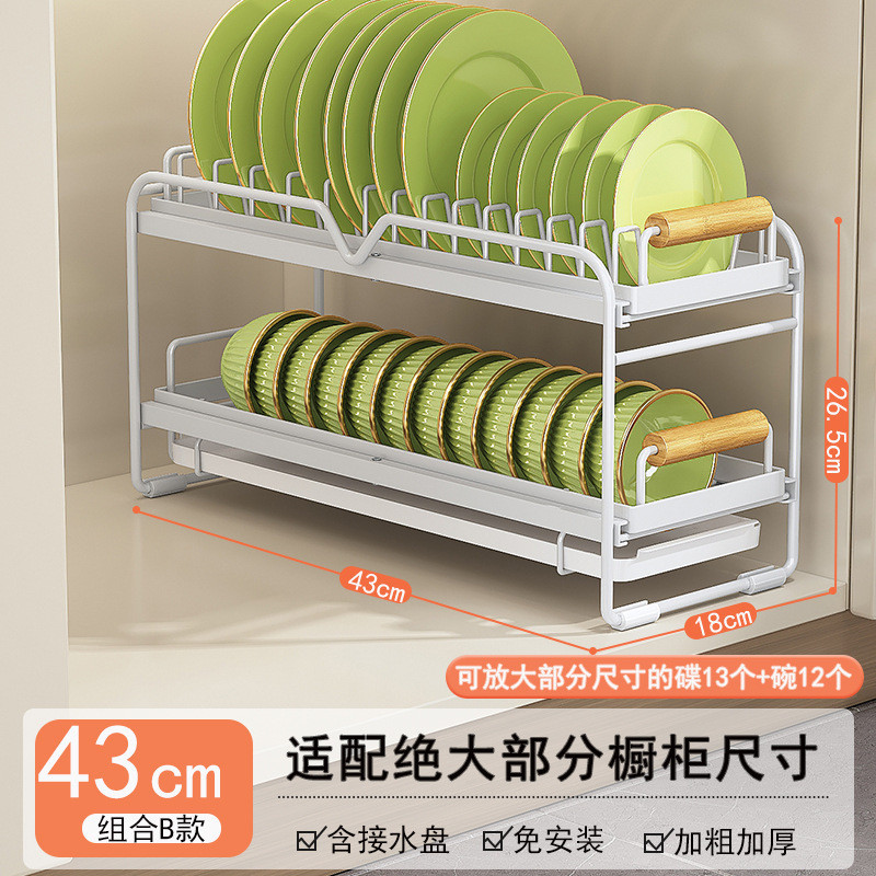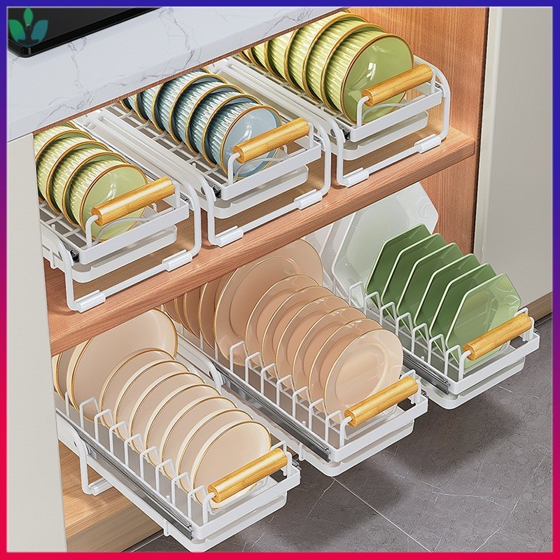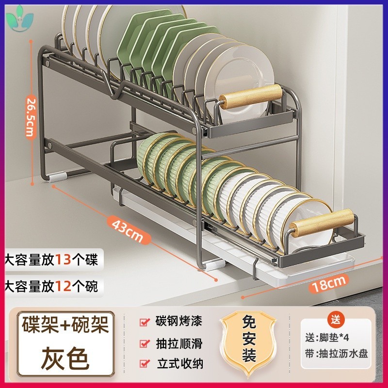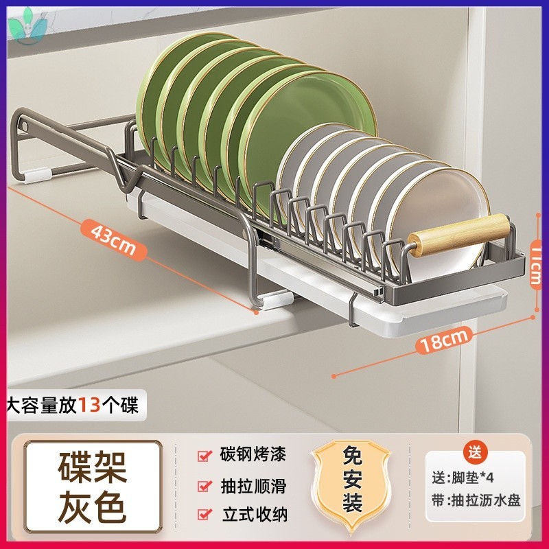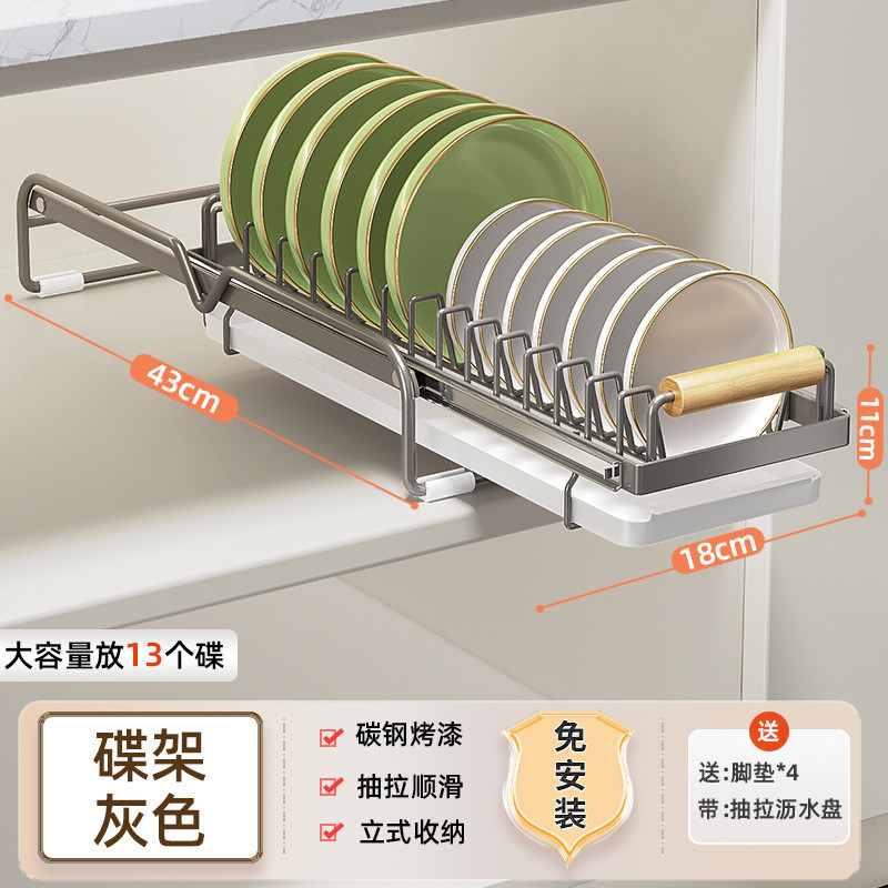 Cabinet Pull-out Dish Rack Installation-Free Overall Rack Kitchen Draining Dish Rack Guide Rail GXUG
