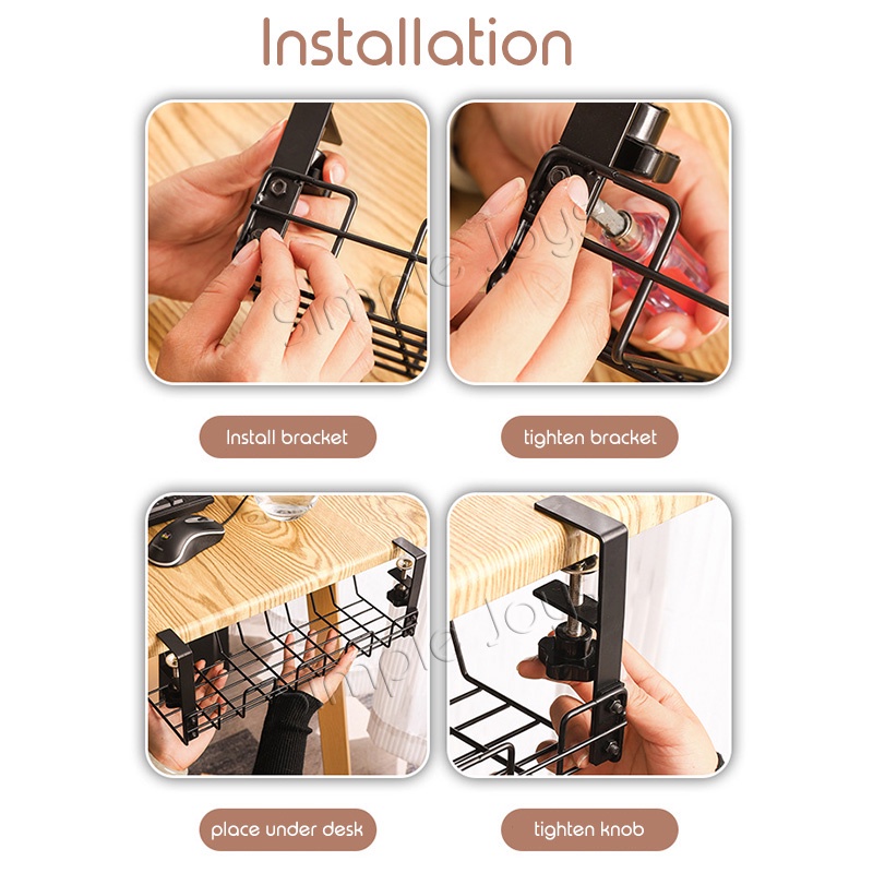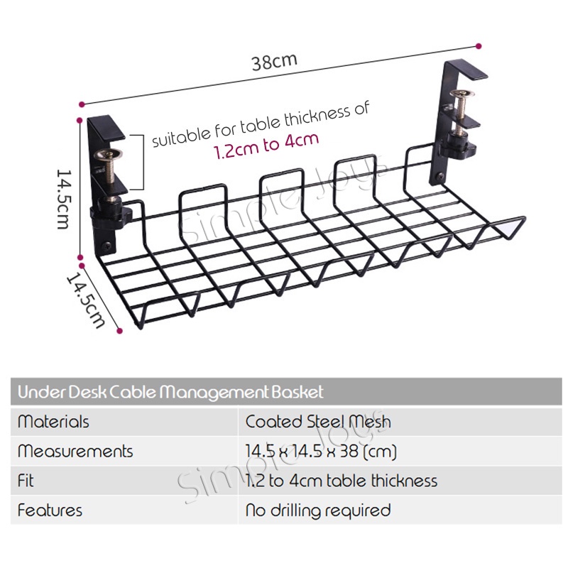 Cable Management Under Desk No Drill Under-Table Organizer Tray