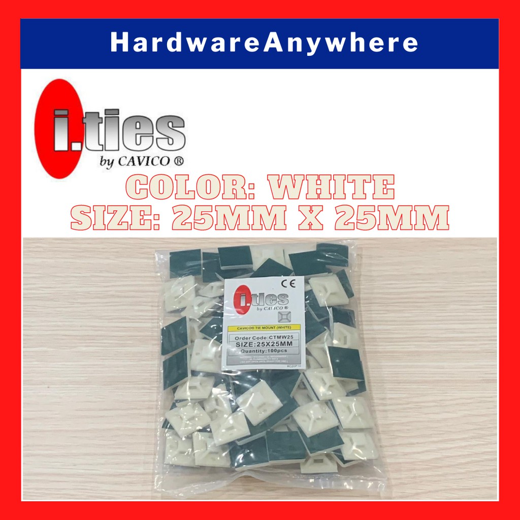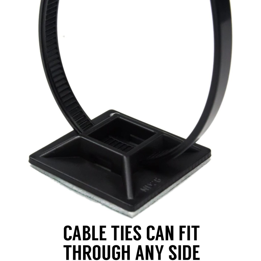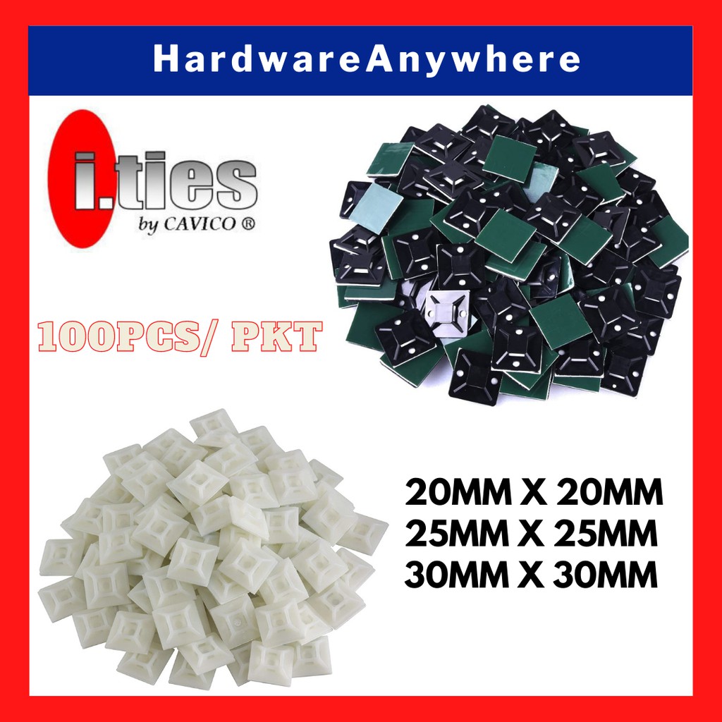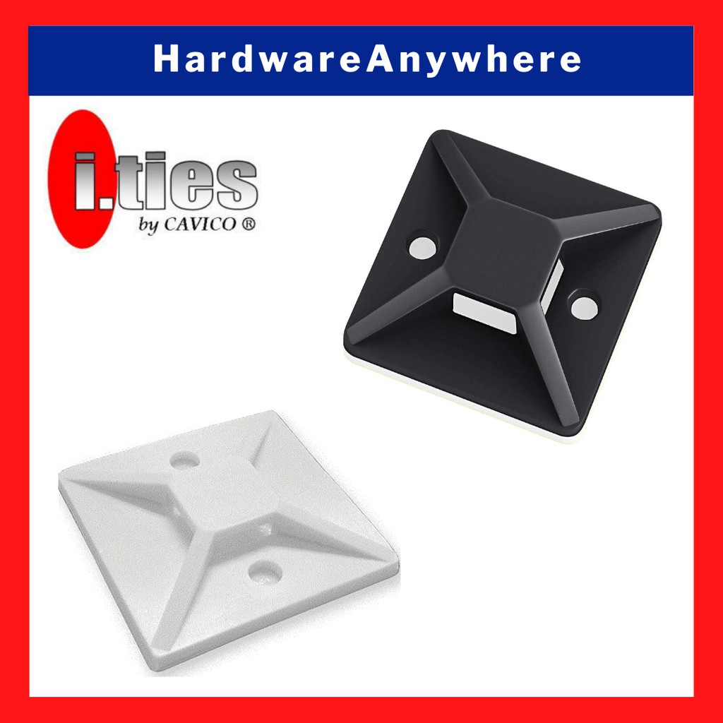 Cable Tie Mounting Base [White / Black] 1 packet of 100pcs - Adhesive mount cable tie holder