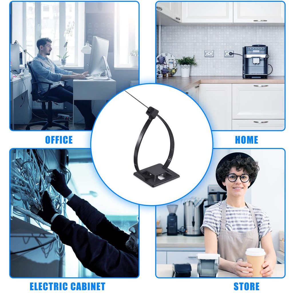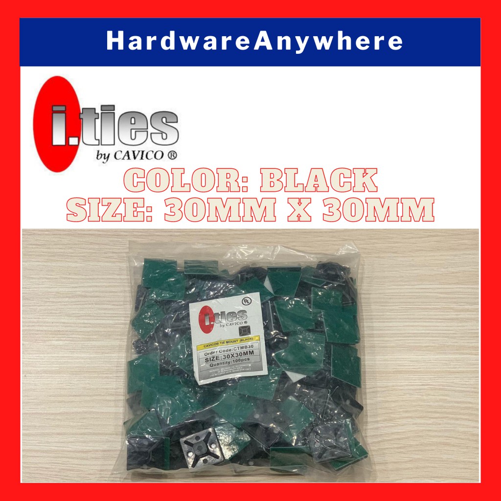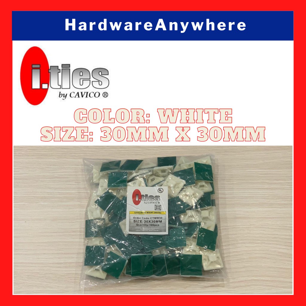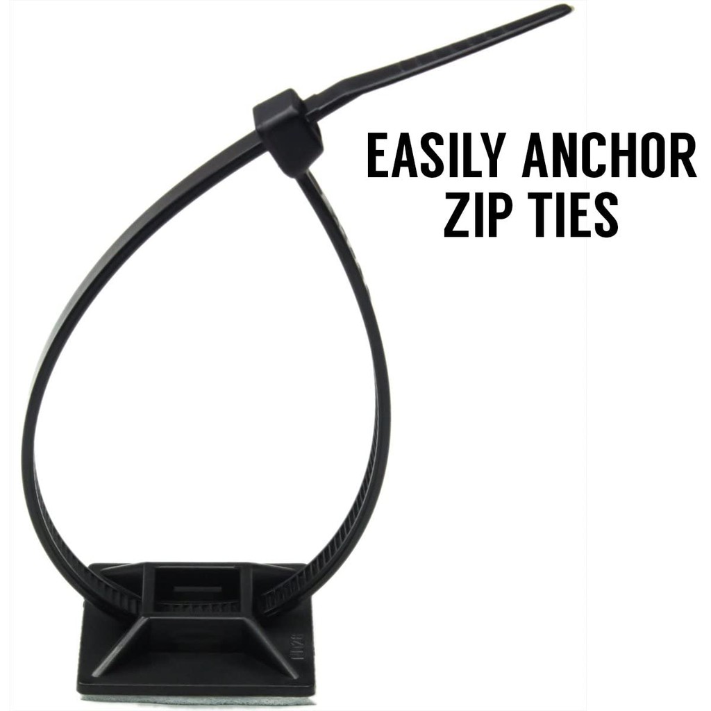 Cable Tie Mounting Base [White / Black] 1 packet of 100pcs - Adhesive mount cable tie holder