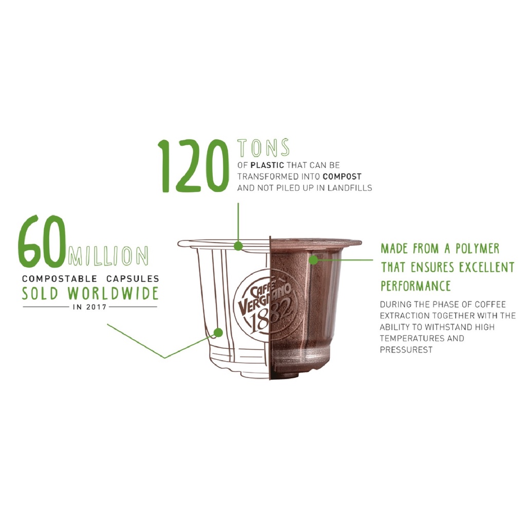 Caffe Vergnano 1882 Espresso Nespresso Compatible Compostable Arabica Coffee Capsule, 10x5g