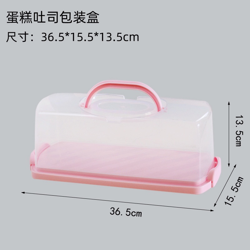 Cake Carrier Portable Loaf Box with Handle and Transparent Lid Rectangular Storage Container for Buns