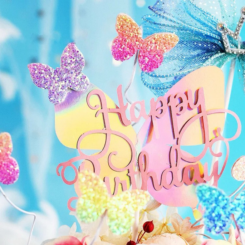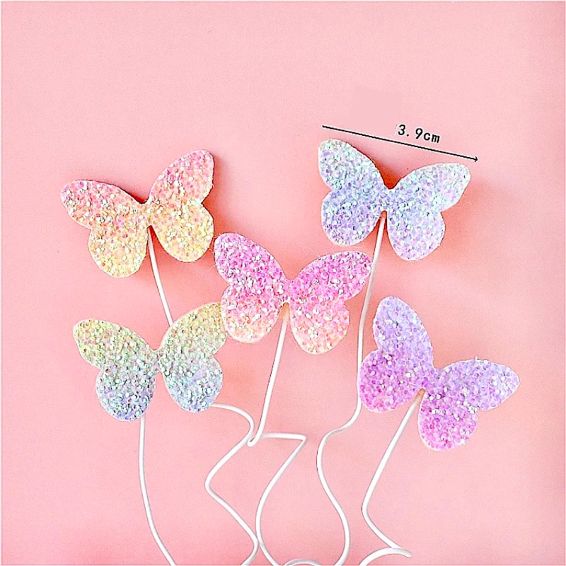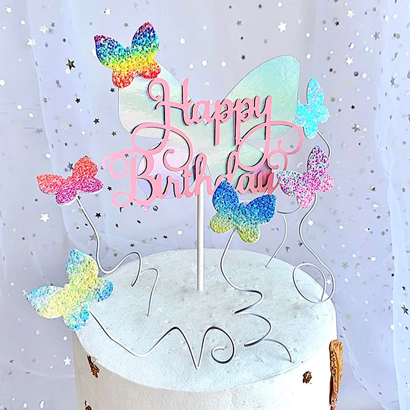 5 Pcs Rainbow Butterfly Cake Topper Rainbow Glitter Glitter Cake Topper Butterfly Rainbow Glitter Birthday Cake Decoration/ Premium Luxury Rainbow Butterfly Birthday Cake Decoration/