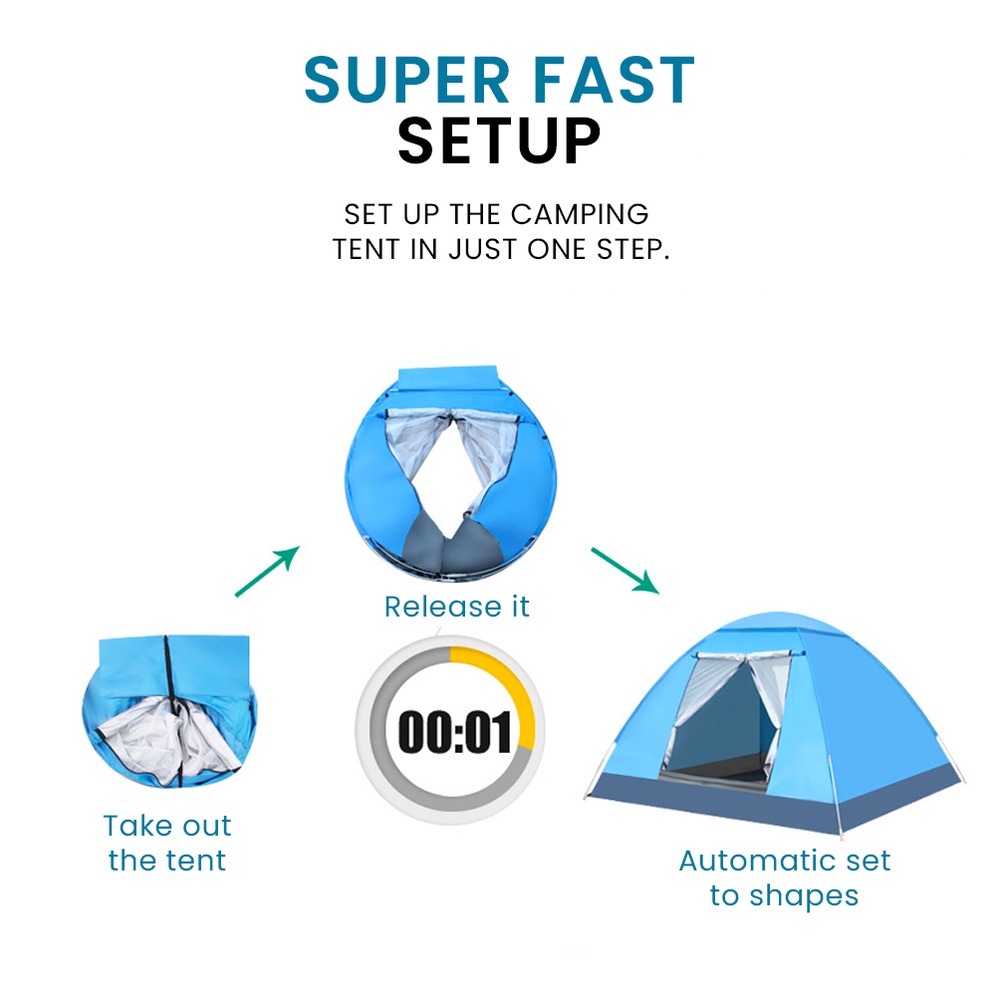 Camping Tent Instant Open Setup Automatic Pop Up Foldable Portable Outdoor Beach Tent Hiking Family Anti UV 3-4 Person