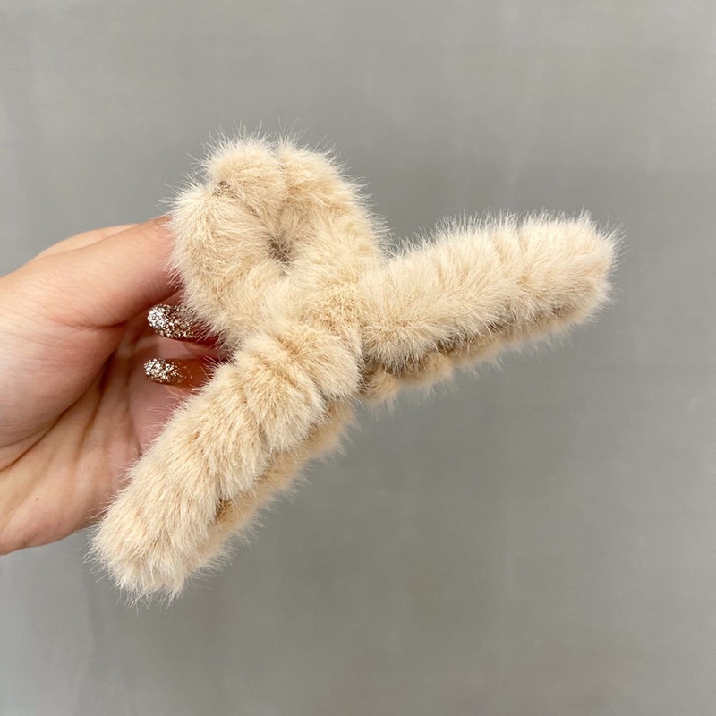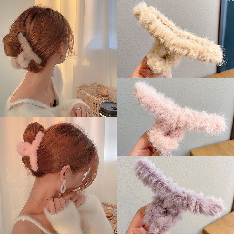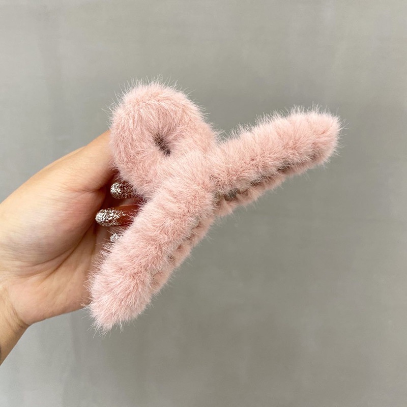 Candy Color Faux Fur Hair Clips Clamps Plush Hair Claws Furry Shark Clip French Back Head Hair Catch Barrette Women Hair Crabs Clip Hair Accessories