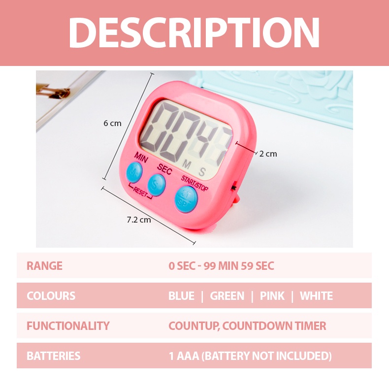 Candy Coloured Digital Kitchen Cooking Timer (Min:sec w/ Count-up & Count-down)