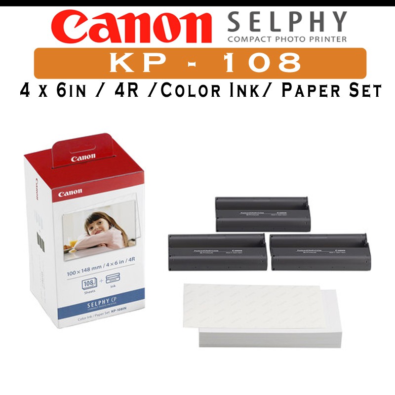 Canon Selphy KP-108 Compact Photo Printer Postcard Size Color Ink Paper Set | 4R Size | 108 sheets