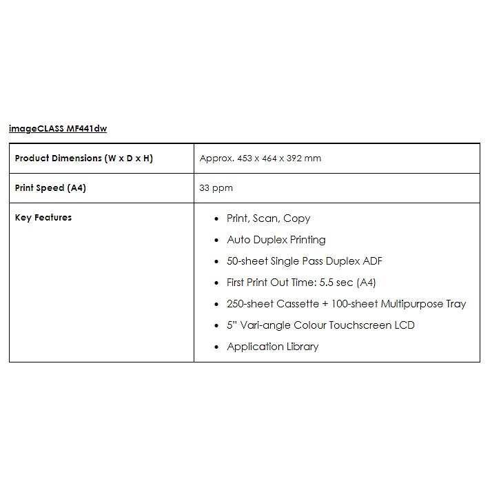 Canon imageCLASS MF441dw monochrome 3-in-1 MFP with fast two-sided printing