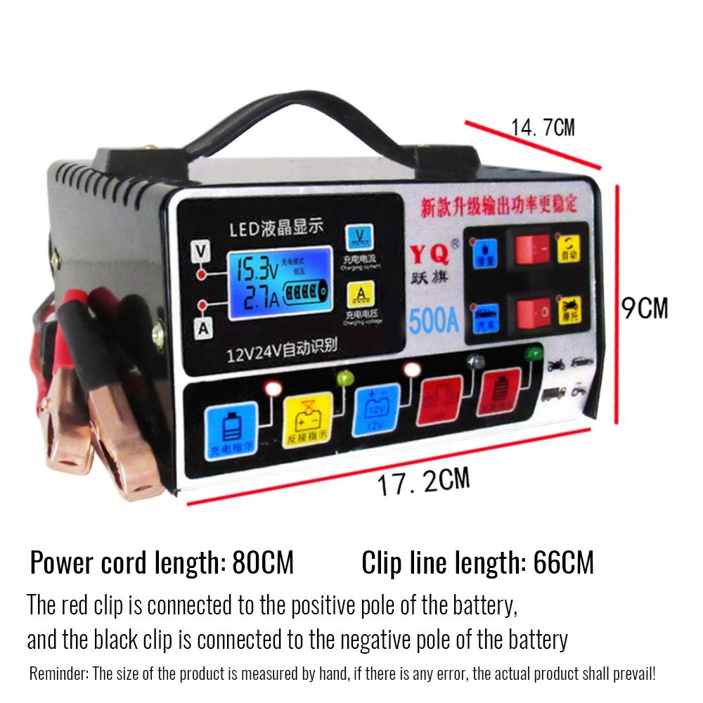 500A Car Battery Charger 12-24V Stable Constant Current Constant Voltage Maintenance Battery Pengecas Bateri Lori Kereta