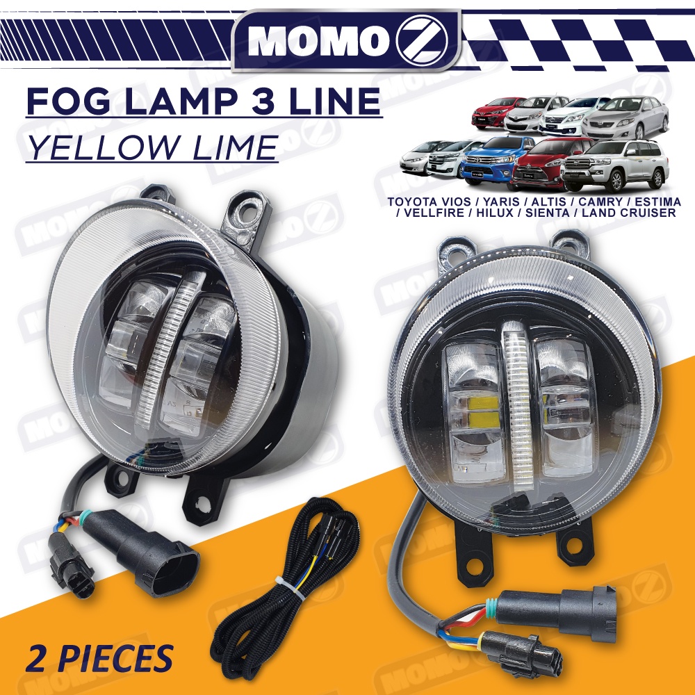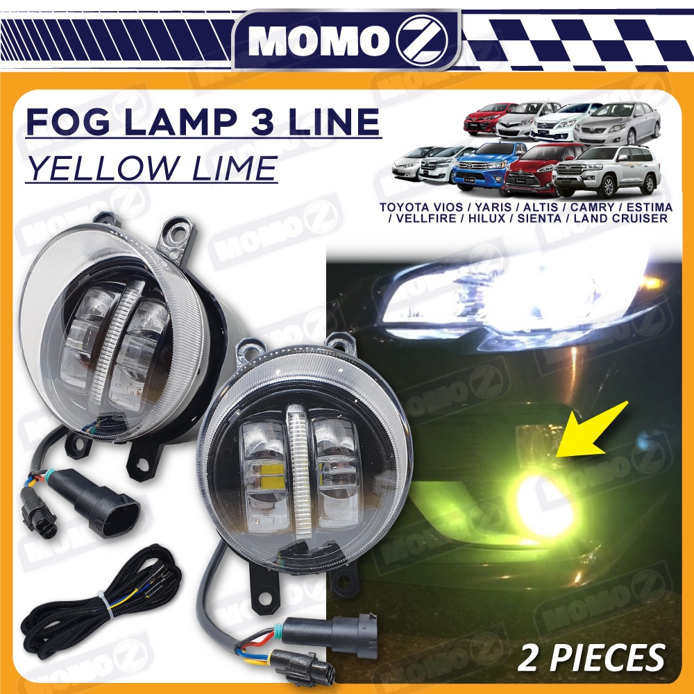 Car LED Toyota Hilux Vios Vellfire Yaris Estima Altis Camry Sienta Land Cruiser LED Lime Yellow Fog Lamp Style 3 Line