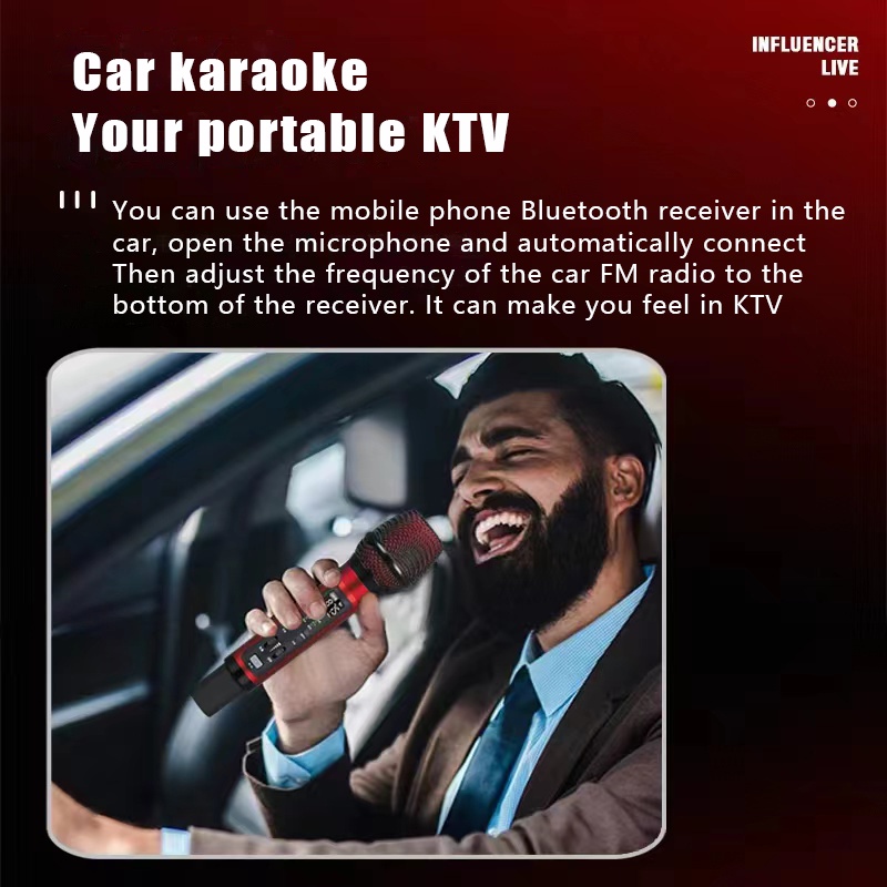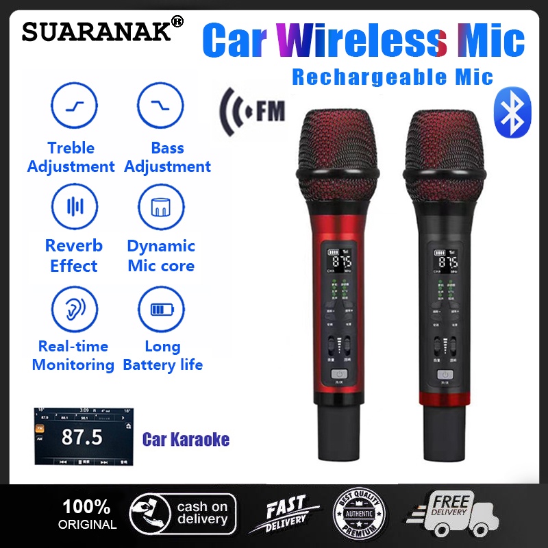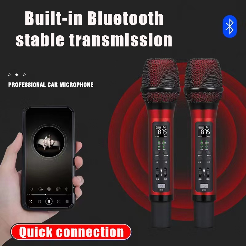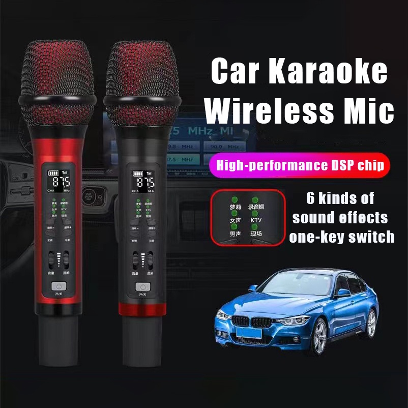 Car Wireless Microphone Bluetooth FM Connection Built-in Reverb DPS Rechargeable Handheld Microphone for Mobile Phone Car Karaoke Live Streaming Recording