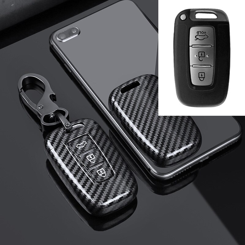 Carbon Fiber ABS Car Key Case For Kia K5 Sportage Sorento Forte Shuma Borrego Hyundai Remote Fob Cover Keychain Protector Bag