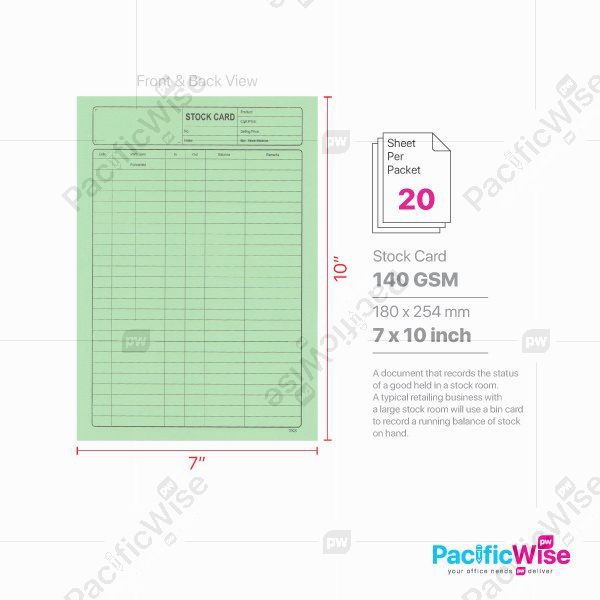 Card / Kad Stok 7” x 10” / Card Paper for Inventory Record (20 Sheets / Pack)