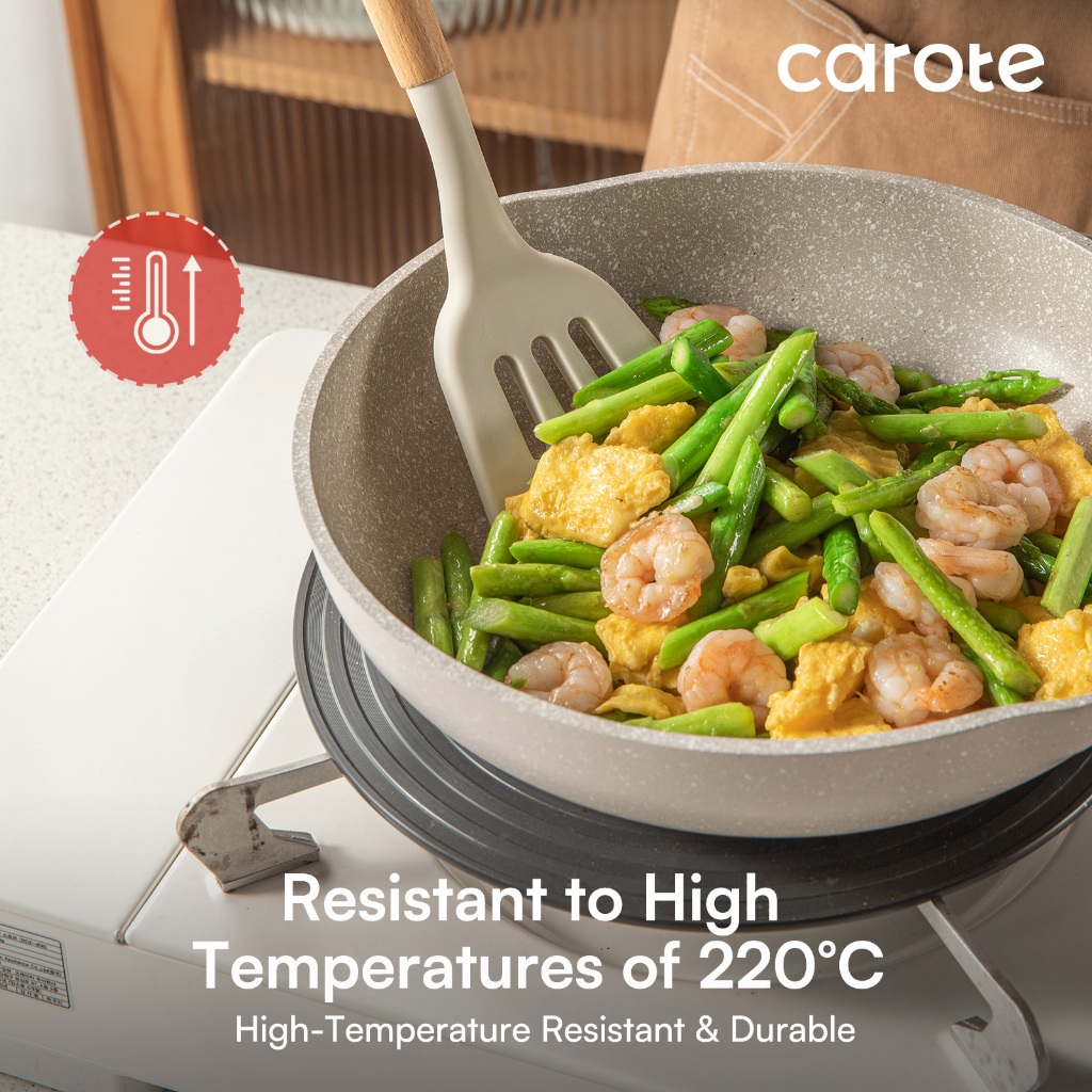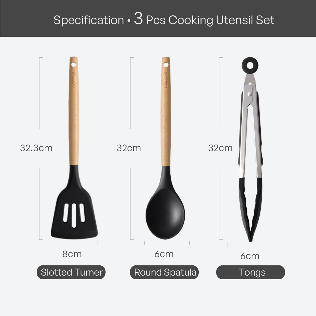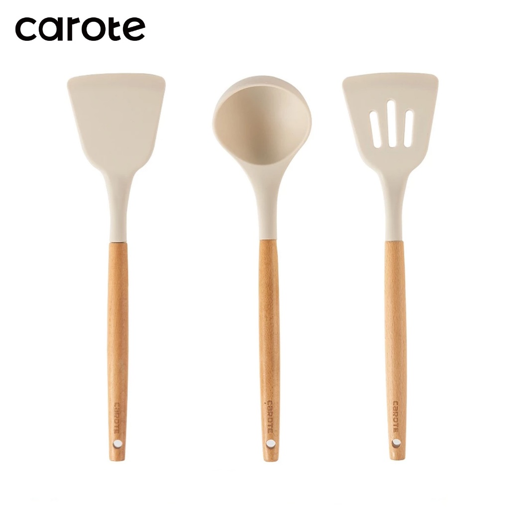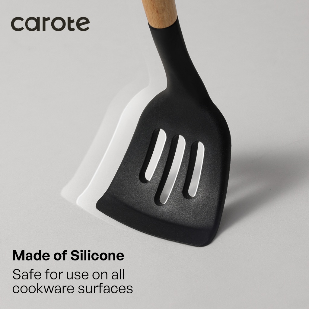 Carote Silicone Slotted Turner/Ladle/Turner or Tong 3pcs Non-stick Food Grade Kitchen Utensils for Nonstick pans