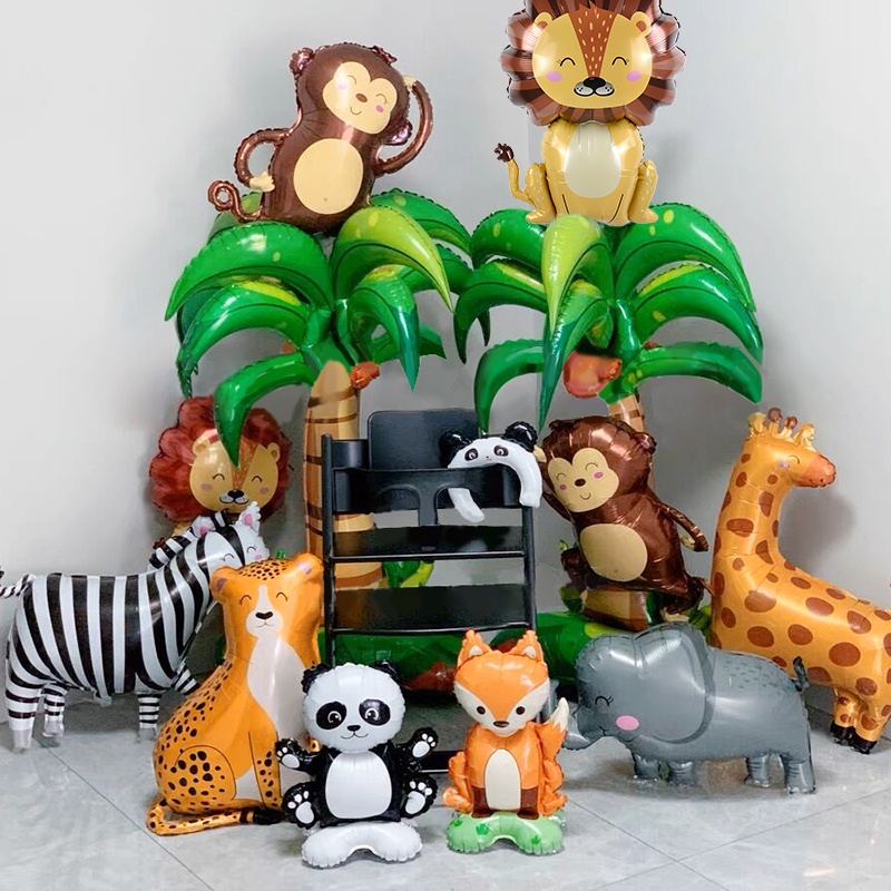 Cartoon Animal Theme Foil Balloon Jungle Safari Forest Lion Rabbit Kids Birthday Decoration Supplies Elephant Giraffe Baloon