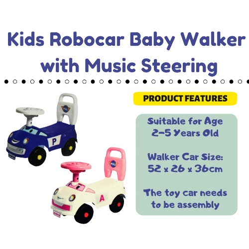 Cartoon Baby Kid Ride On Push Car with Music Horn Steering Wheel Walker Tolo Car