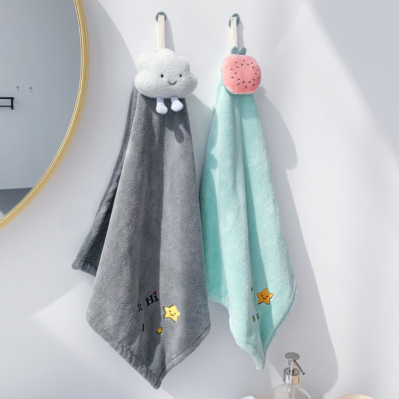 Cartoon Cute Soft Thicken Plush Hand Towel Bathroom Supplies Kitchen Quick Dry Cleaning Wipe Towel Super absorbent Coral Fleece Hanging Hand Towels