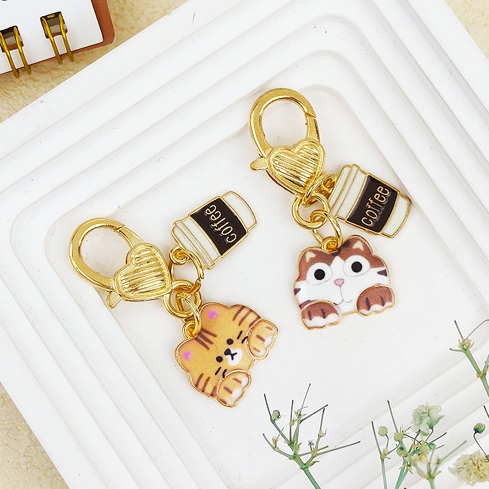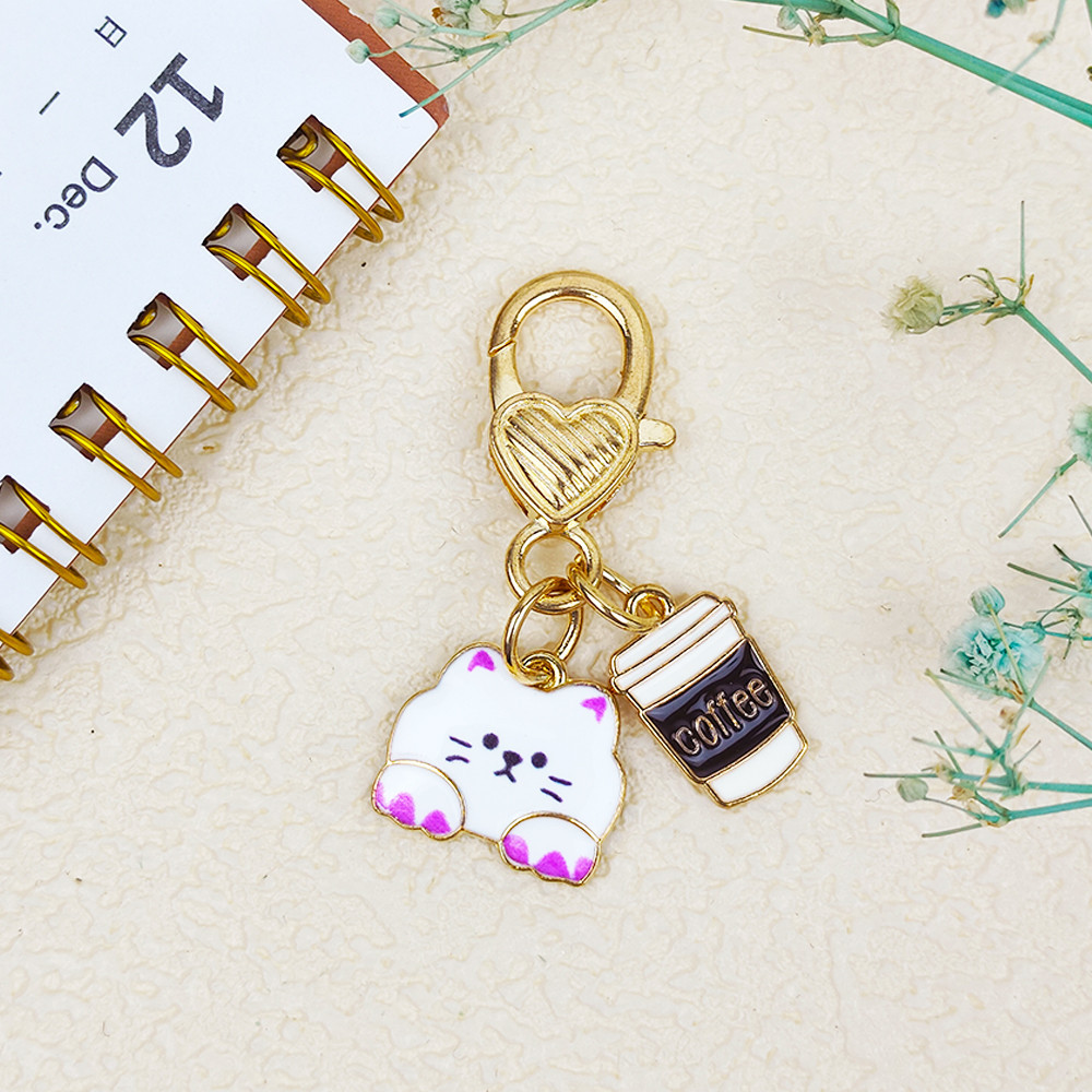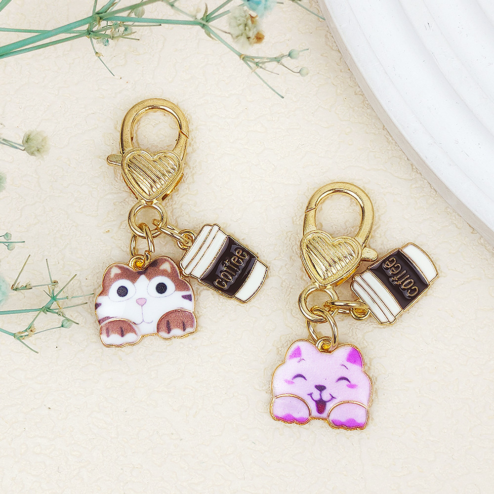 Cartoon Enamel Cat Key Ring Lovely Coffee Cup Kitten Key Chains Kawaii Animal Car Key Holder Handbag Earphone Case Pendants