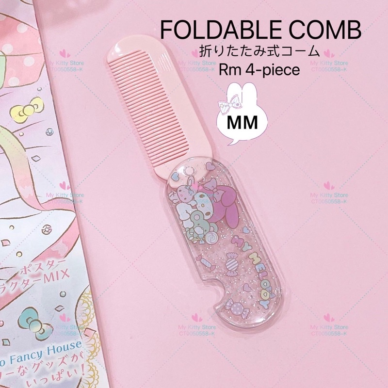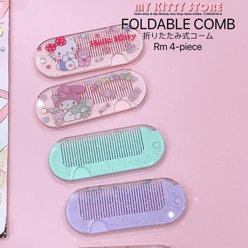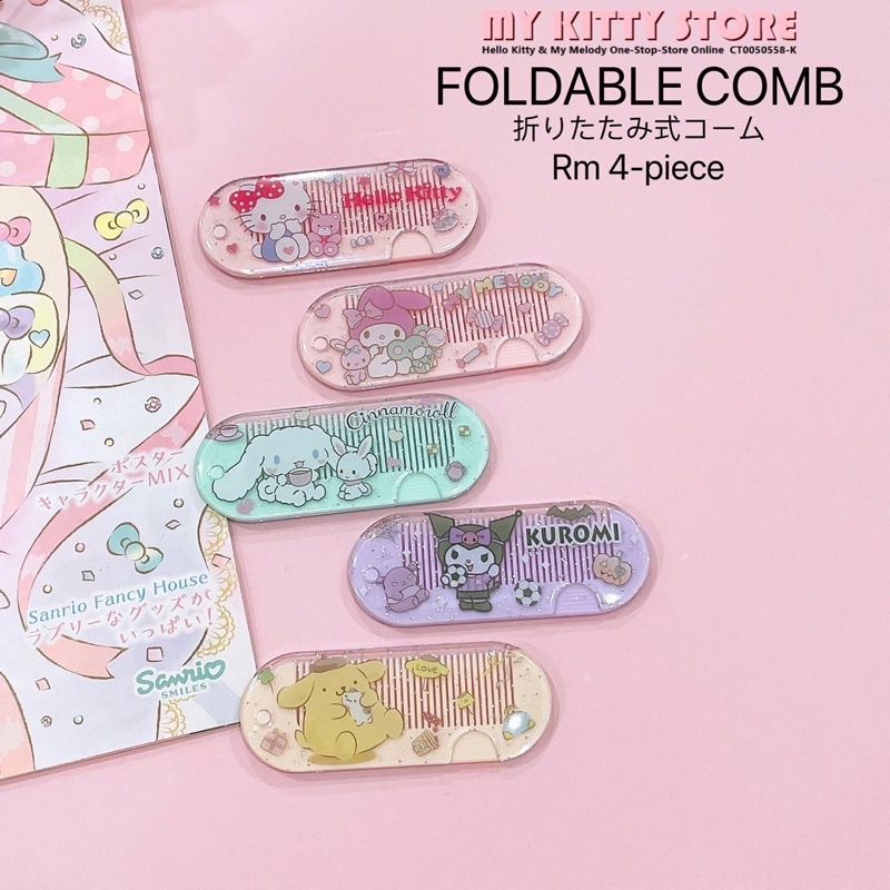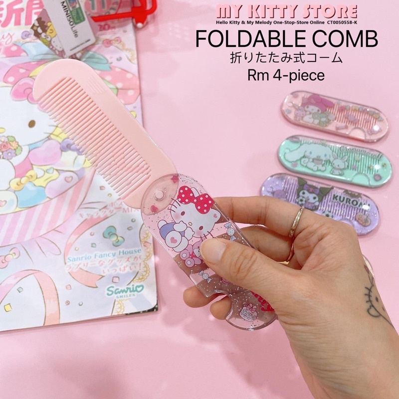 Cartoon Hello Kitty My Melody Kuromi Foldable Comb Cinnamoroll Pompompurin Small Portable Comb Sikat Poket