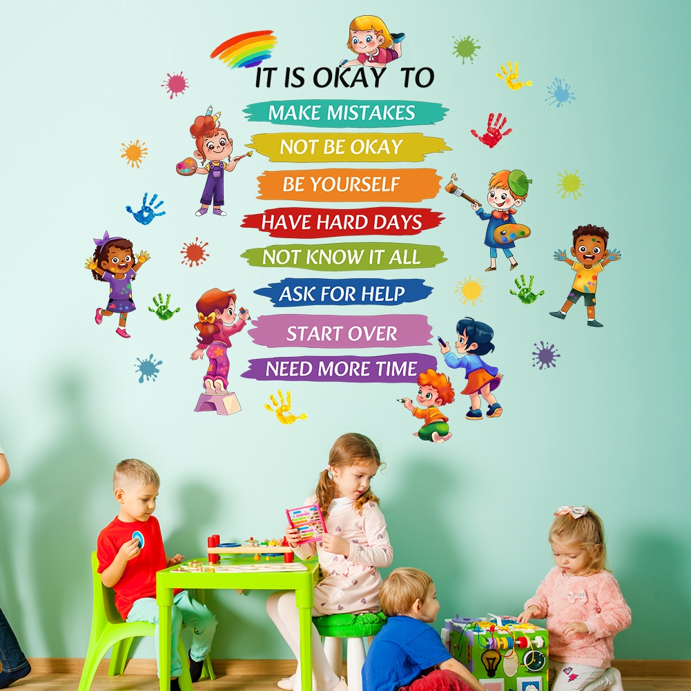 Cartoon Inspirational Children's Room Study Room Educational Educational Wall Stickers, Classroom Kindergarten Counseling Class Wall Decoration Stickers