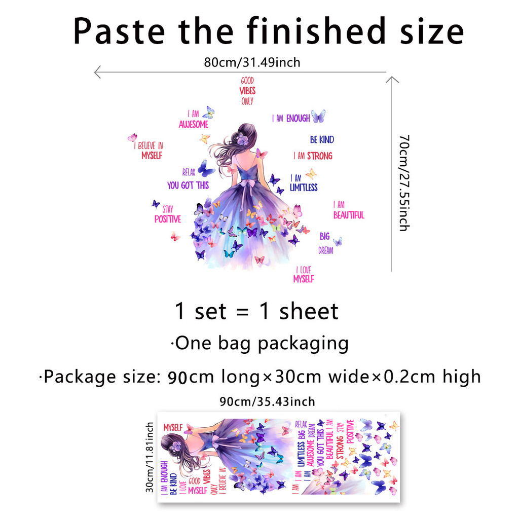 Cartoon Inspirational Motto Girl Wall Stickers Teen Girl Room Decoration Mural Ballet Dancer Butterfly Home Decor Wallpaper