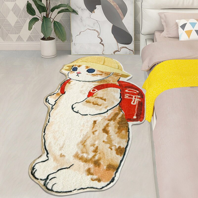Cartoon Kawaii Cat Carpet Rug Thick Plush Shaggy Fluffy Bedside Carpet Floor Mat Doormat Cute Kid Girl Home Decoration