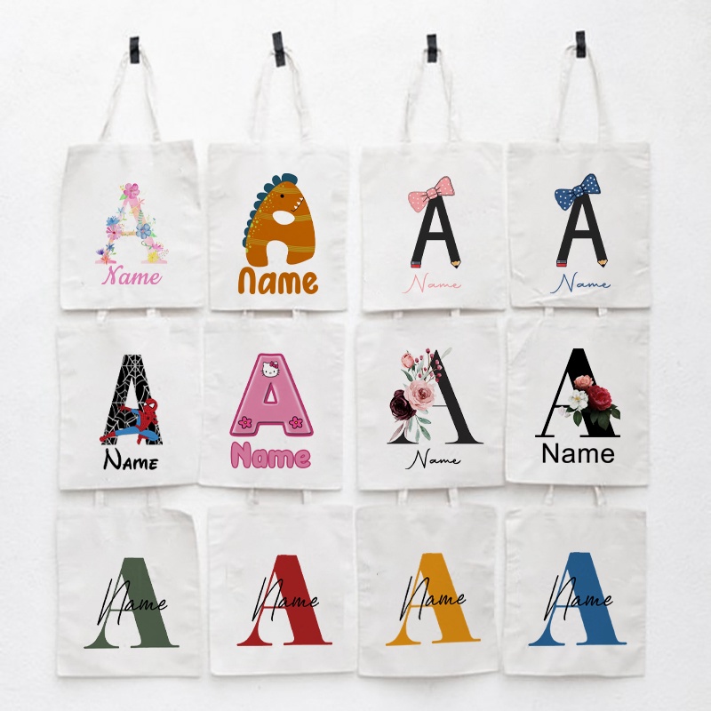Cartoon Letter + name Personalized Cute Tote Bag Boys Girls Bookbags Cartoon Shoulder Bags Creative Gifts