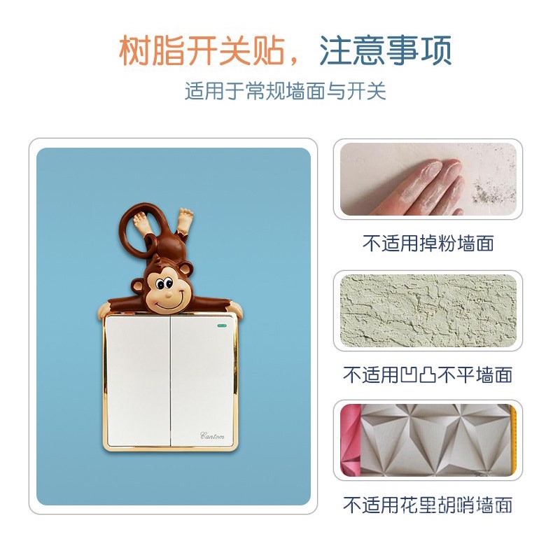 Cartoon Monkey Switch Sticker Animal Socket Decoration Indoor Wall Image Creative Resin 3d Three-Dimensional