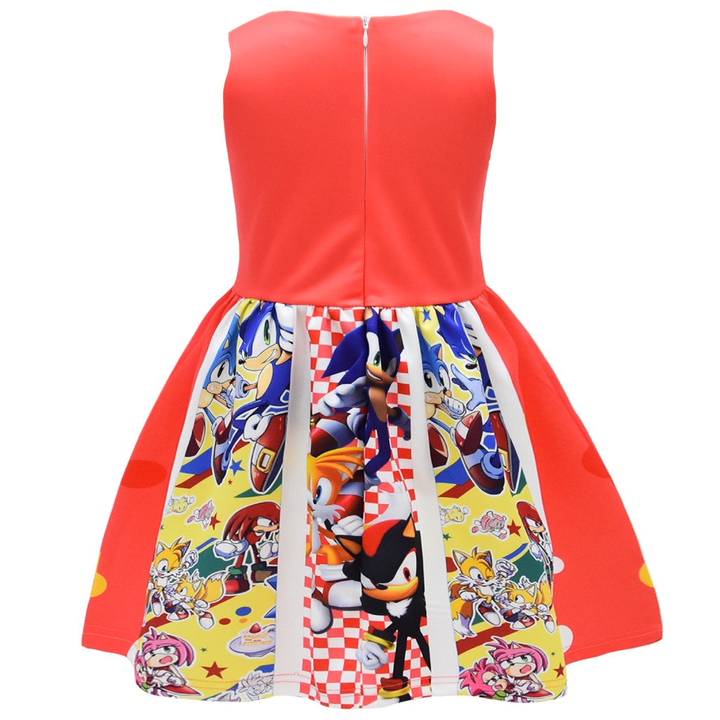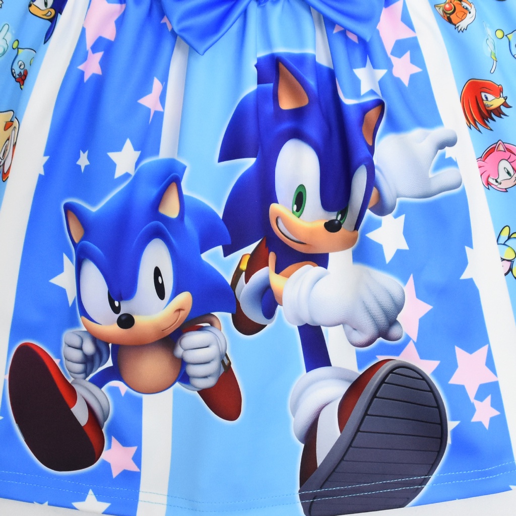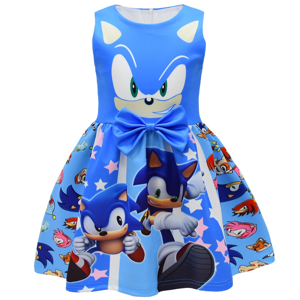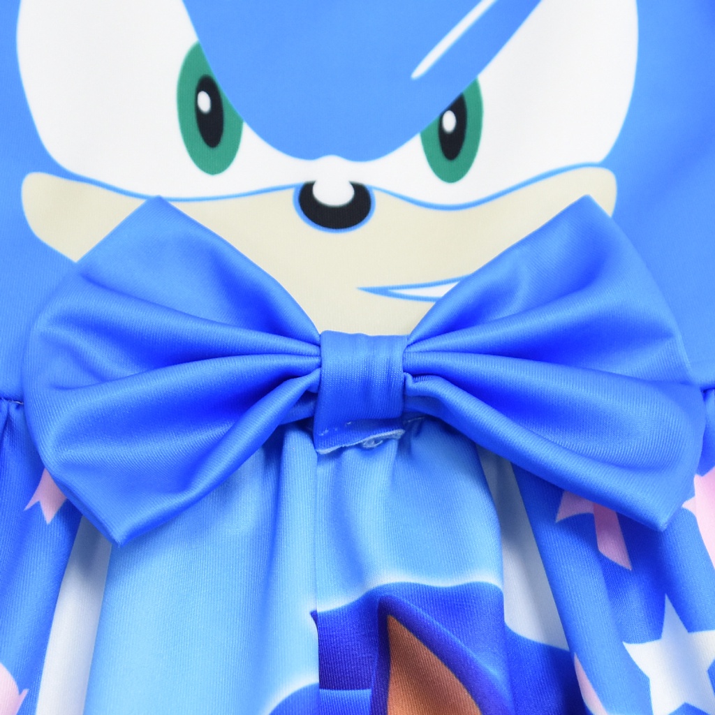 Cartoon Sonic The Hedgehog Costume Sleeveless Princess Dress for Kids 5 Years Old Girl Clothes Sonic Theme Birthday Halloween Party Cosplay