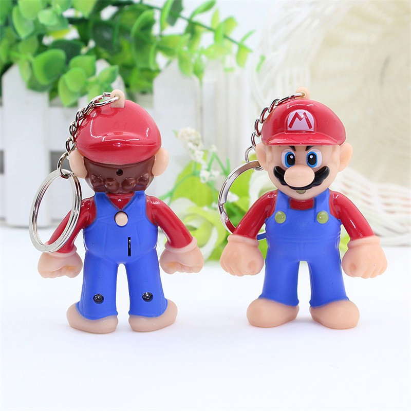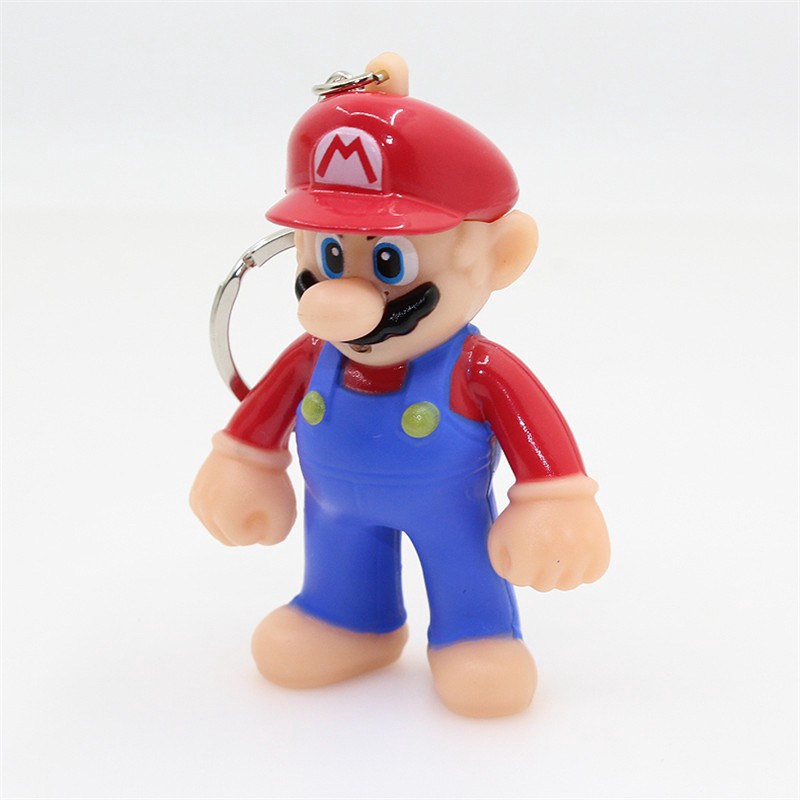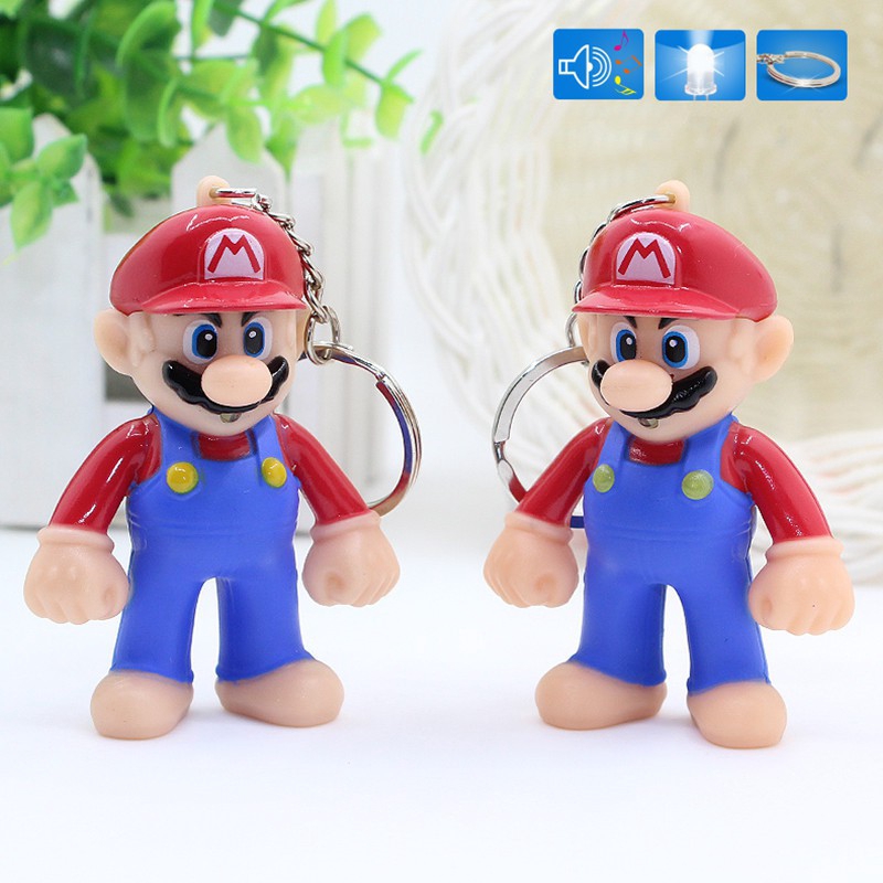 Cartoon Super Mario Action Figures LED Light-up Sound PVC Bros Mario Key chain Collectible Model Toy Birthday Gifts