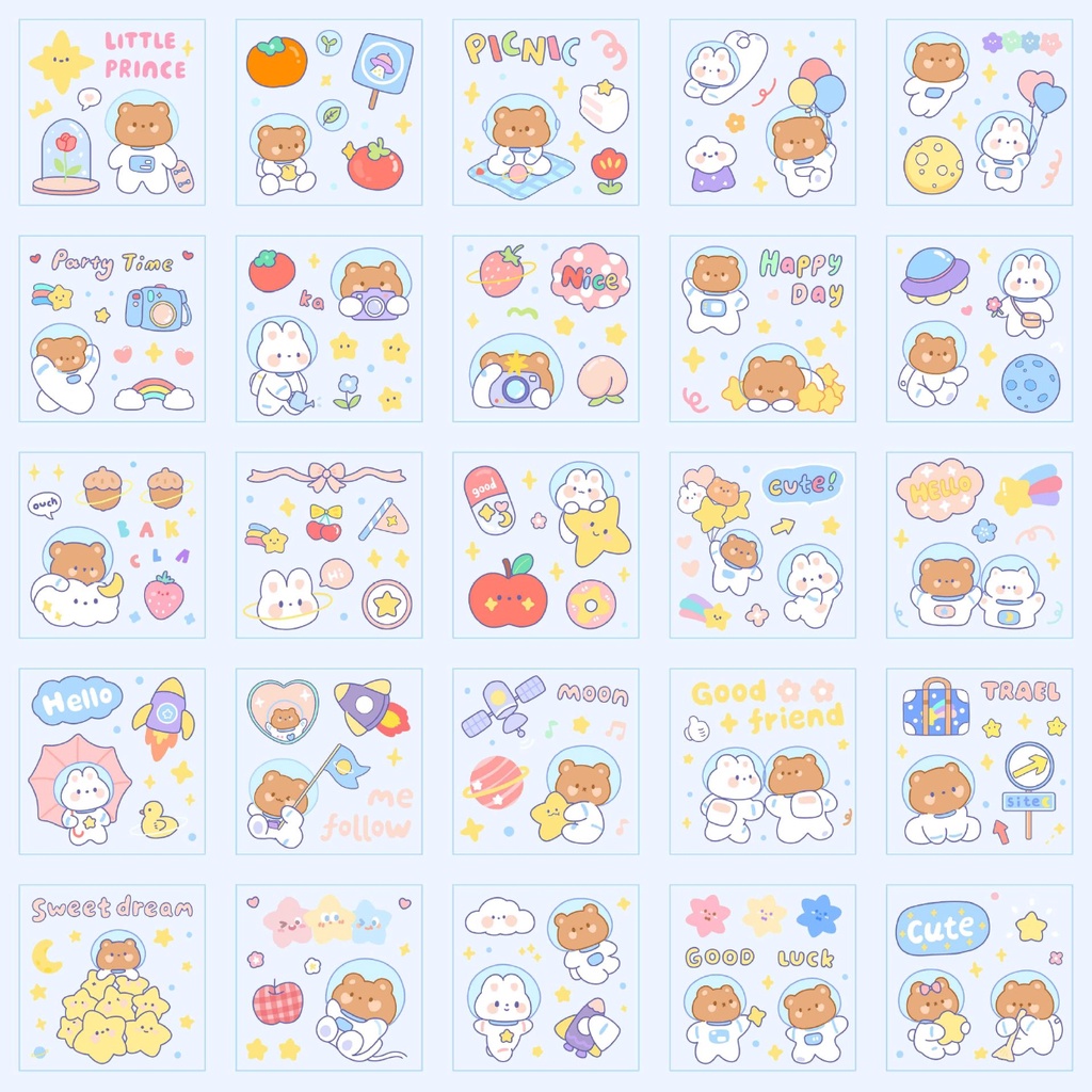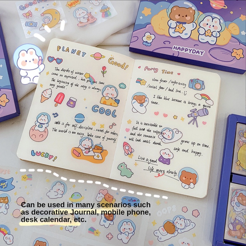 Cartoon cute sticker Waterproof Transparent sticker Water Cup Diary Decorative Material 100pcs Stickers Stationery