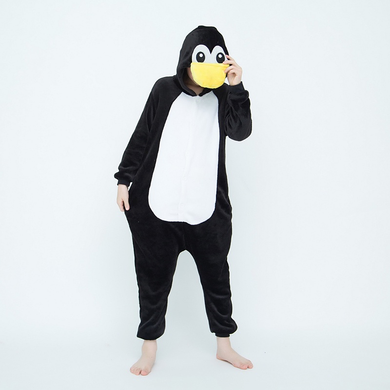 Cartoons Animal Cosplay Costume Kids Child Flannel Pajamas Winter Cute Black Penguin Sleepwear Girls Boys Pyjamas Onesie